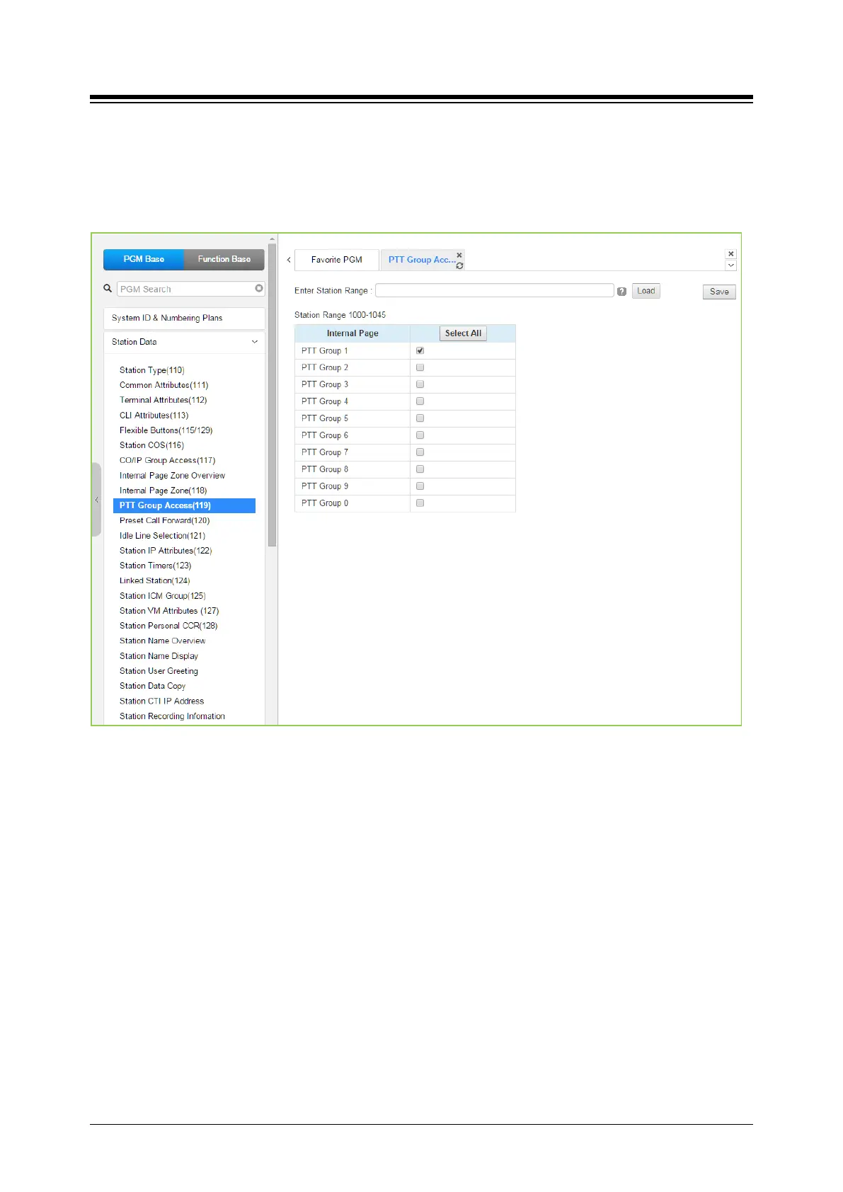 Station range and click [Load] to enter the PTT Group Access data. Check the appropriate boxes