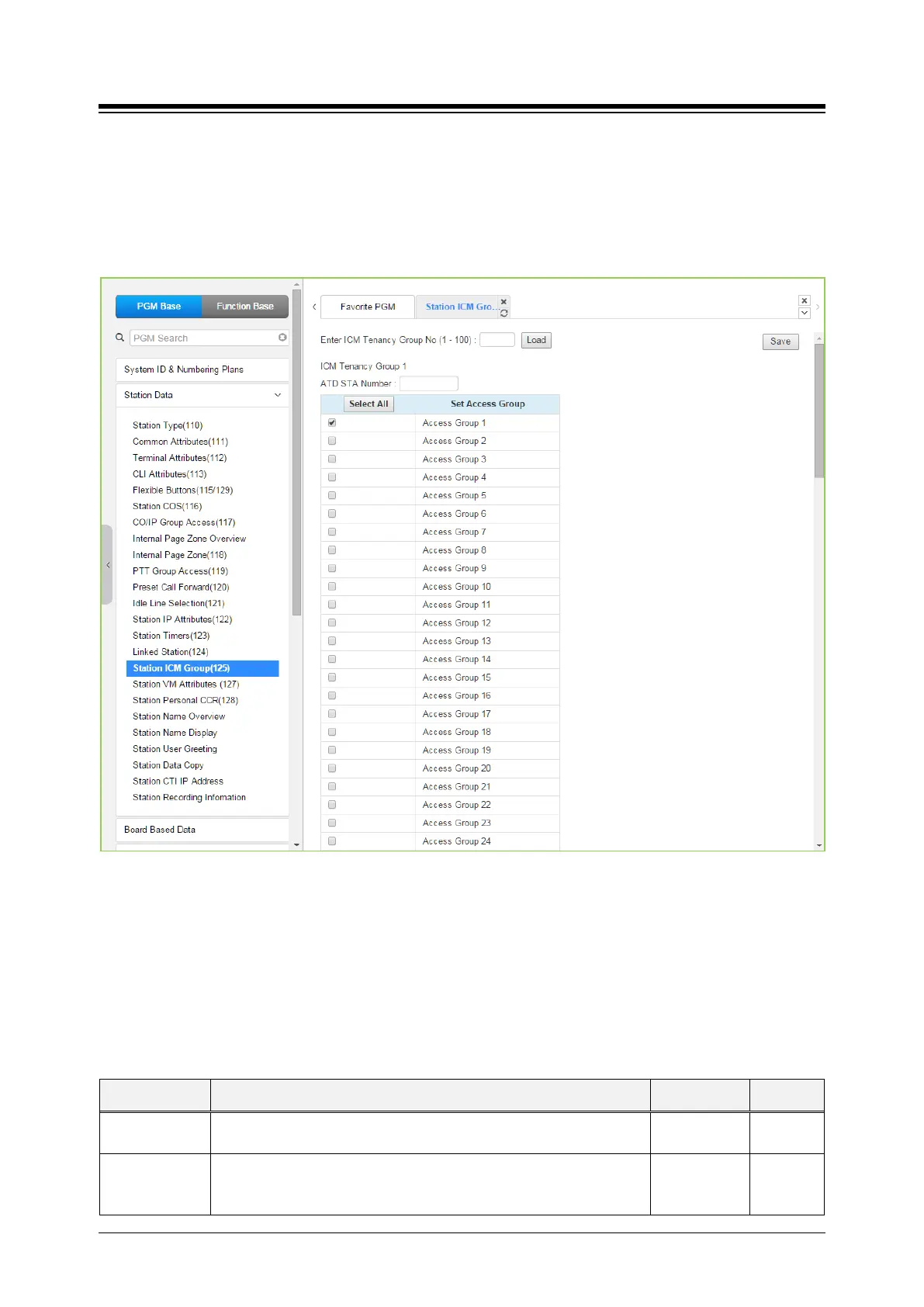 Group Access ICM tenancy groups allowed access by stations of the selected group.