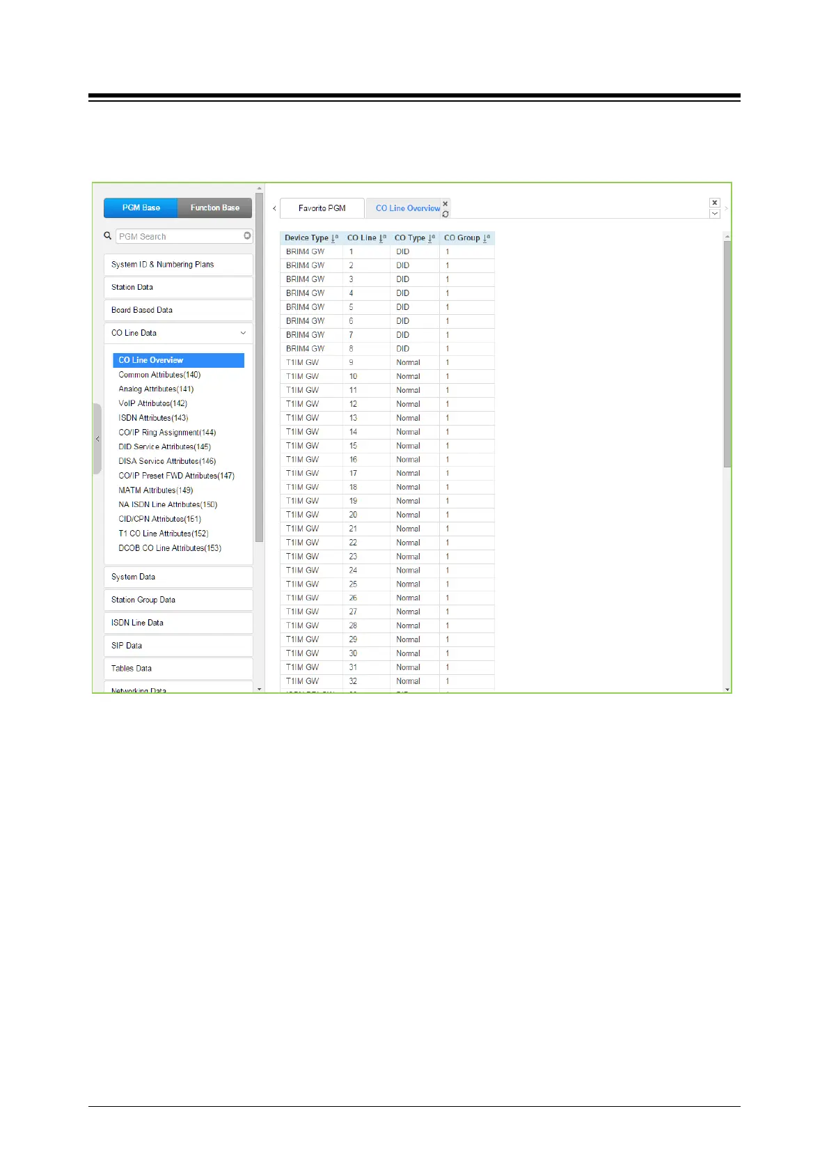 Selecting CO Line Overview will show the current overview of CO line. The information may vary