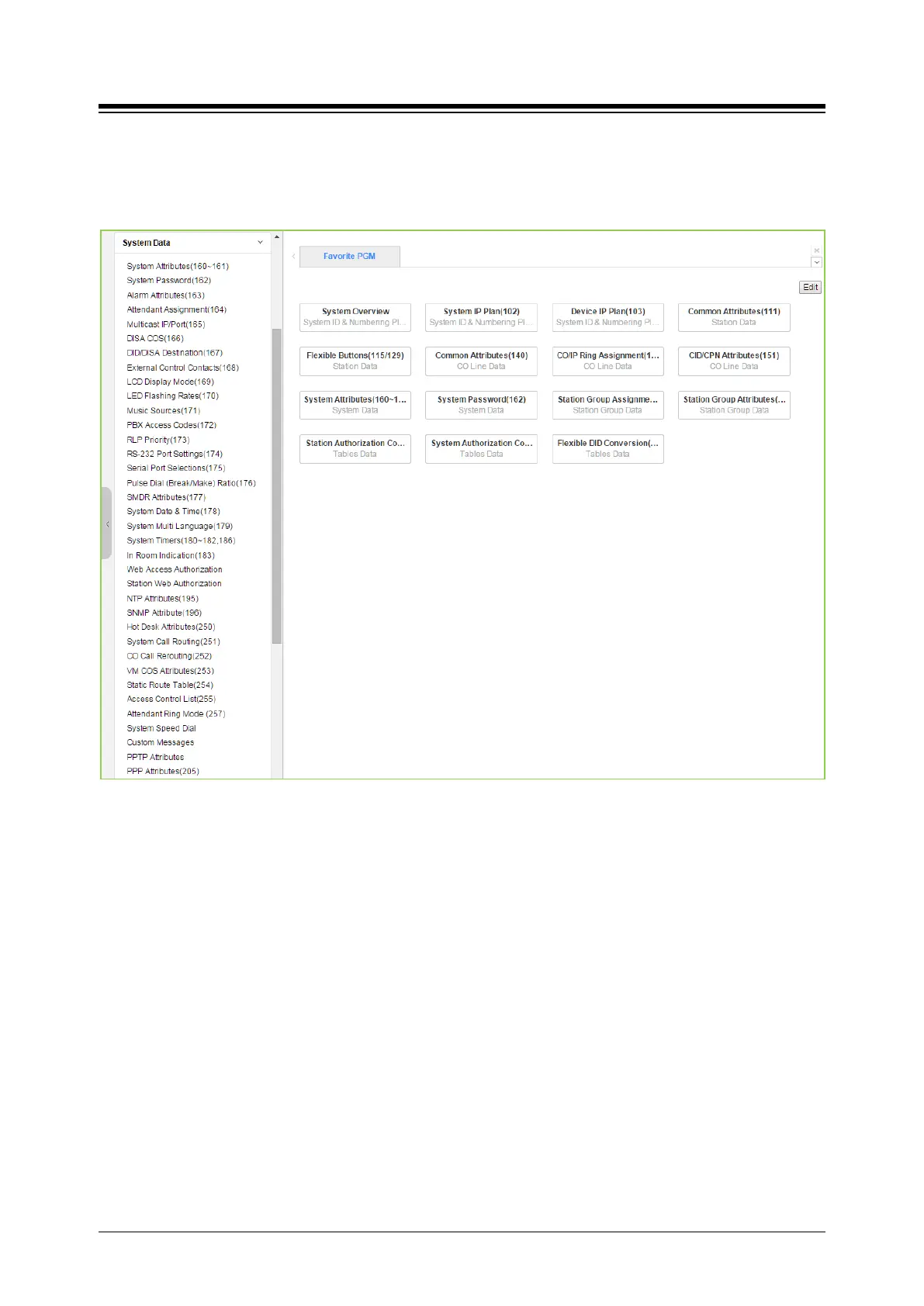 Selecting the System Data program group returns the sub-menu displayed in the left frame as