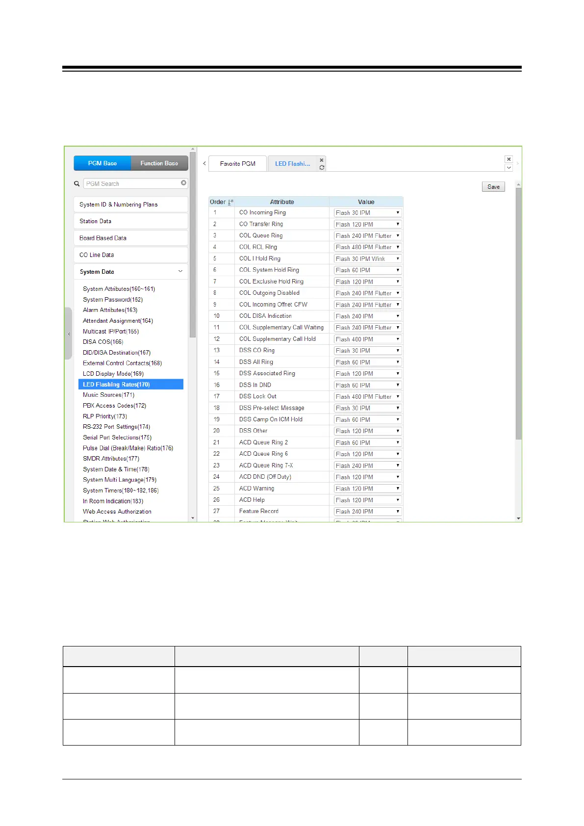 COL Queue Ring CO button queue call back ring flashing rate. 00-14