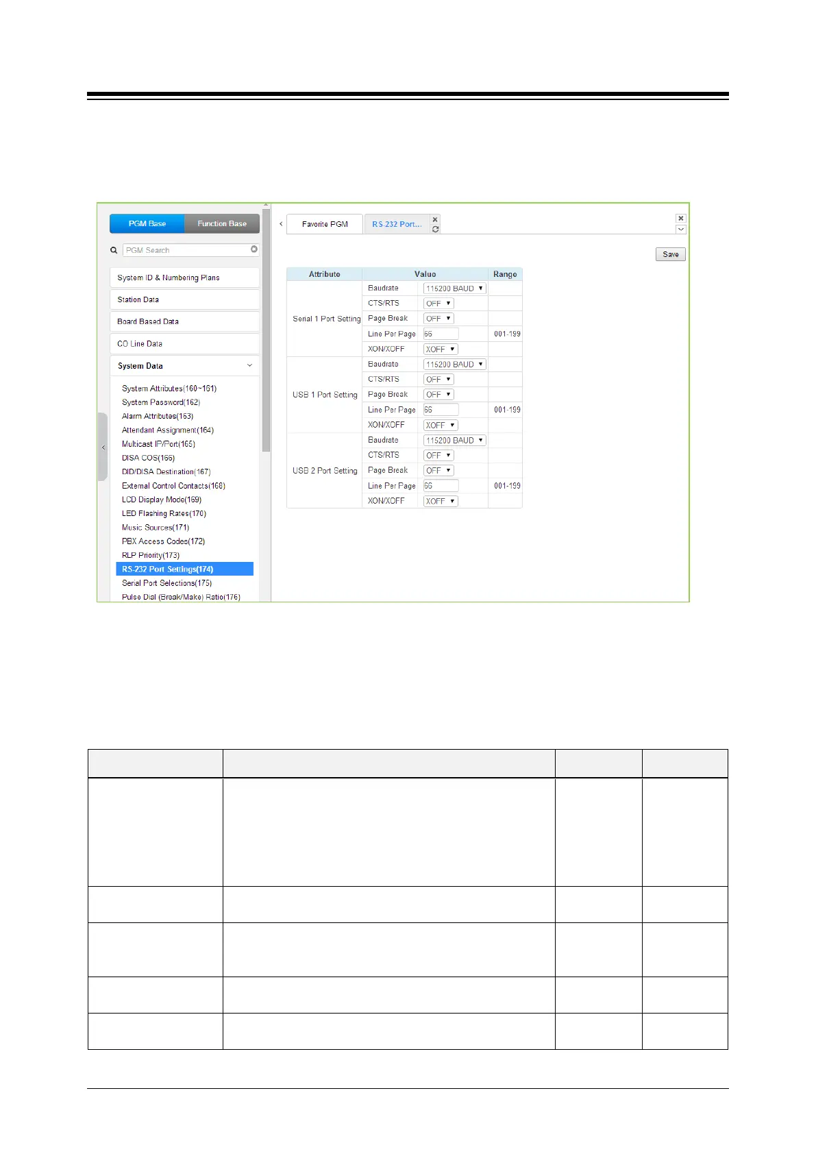 Table 4.4.5.14-1 RS232 PORT and USB 1&2 port Settings