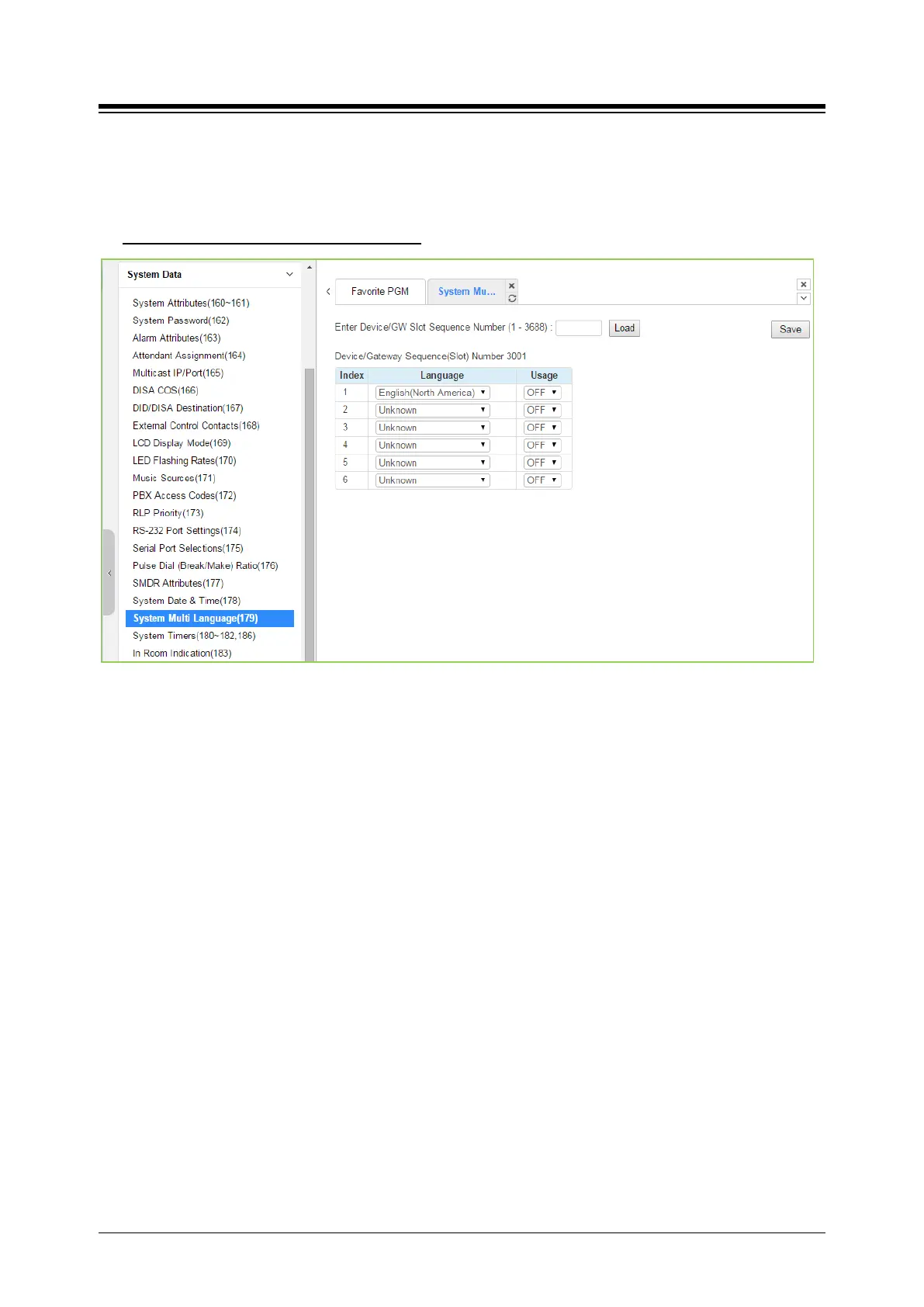 Selecting System Multi Language will display the System Multi Language data entry page. Click