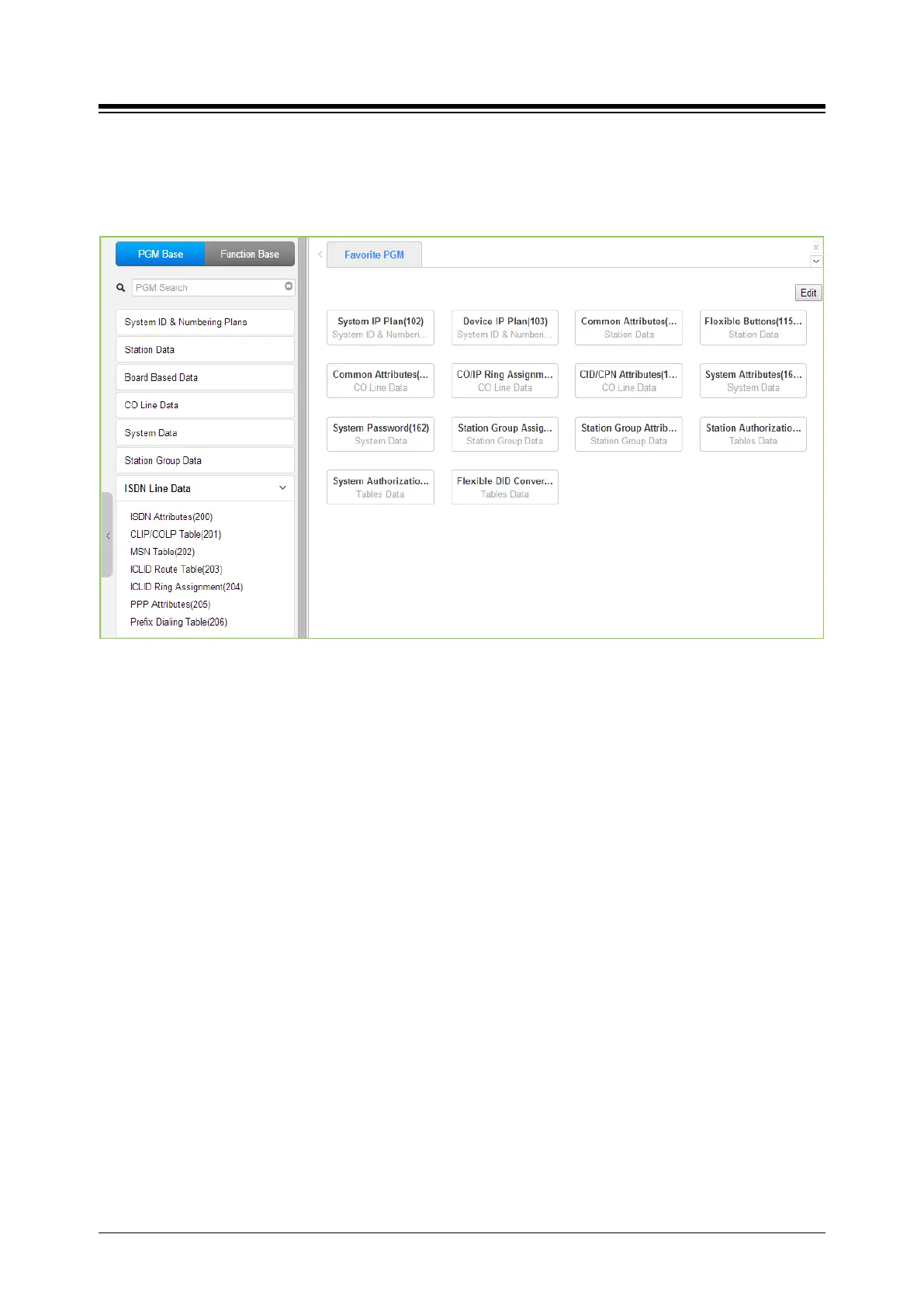 Selecting the ISDN Line Data program group returns the sub-menu displayed in the left frame as