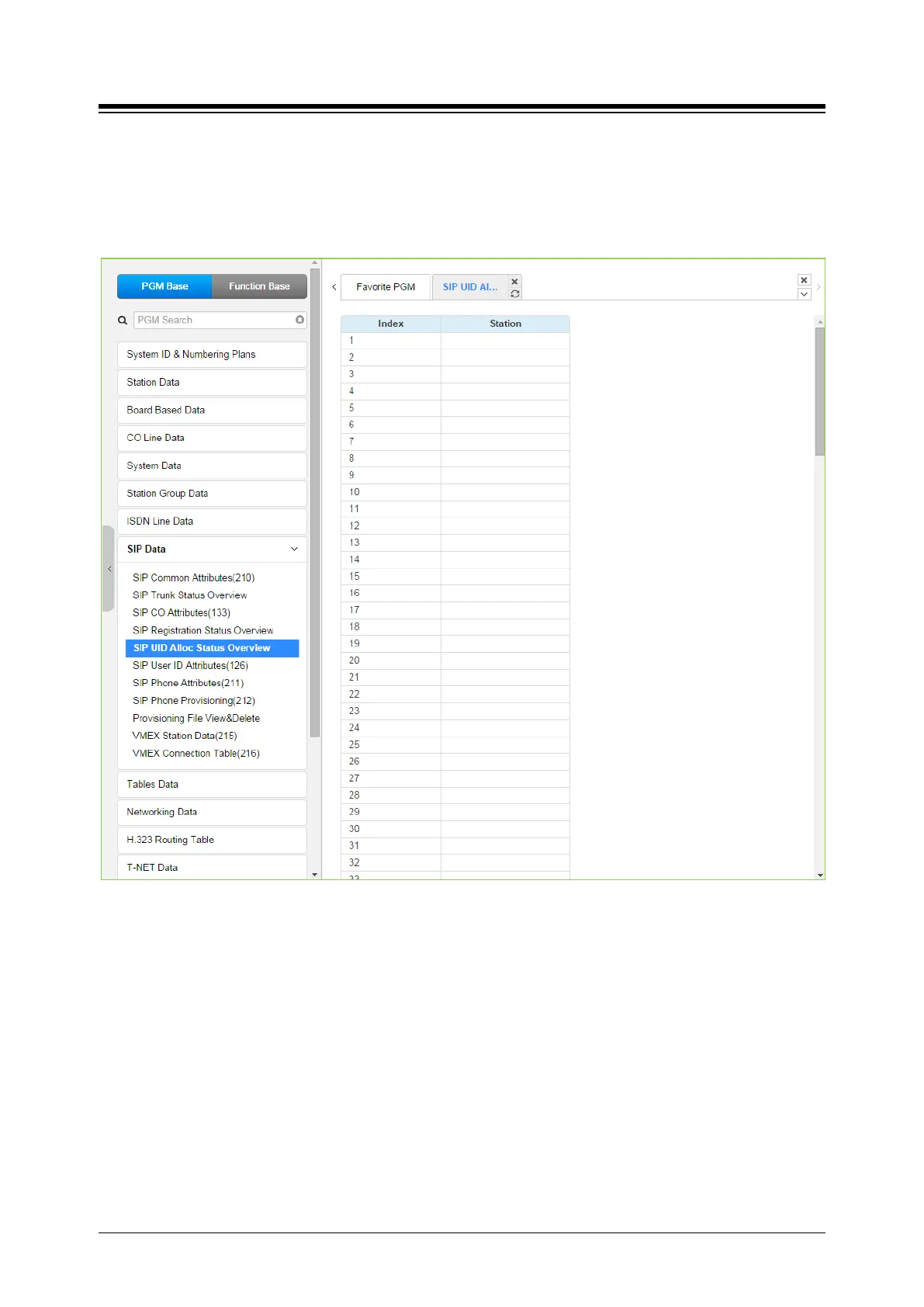 Allocation Status Overview page displays the station(s) assigned to each SIP User Id index in the