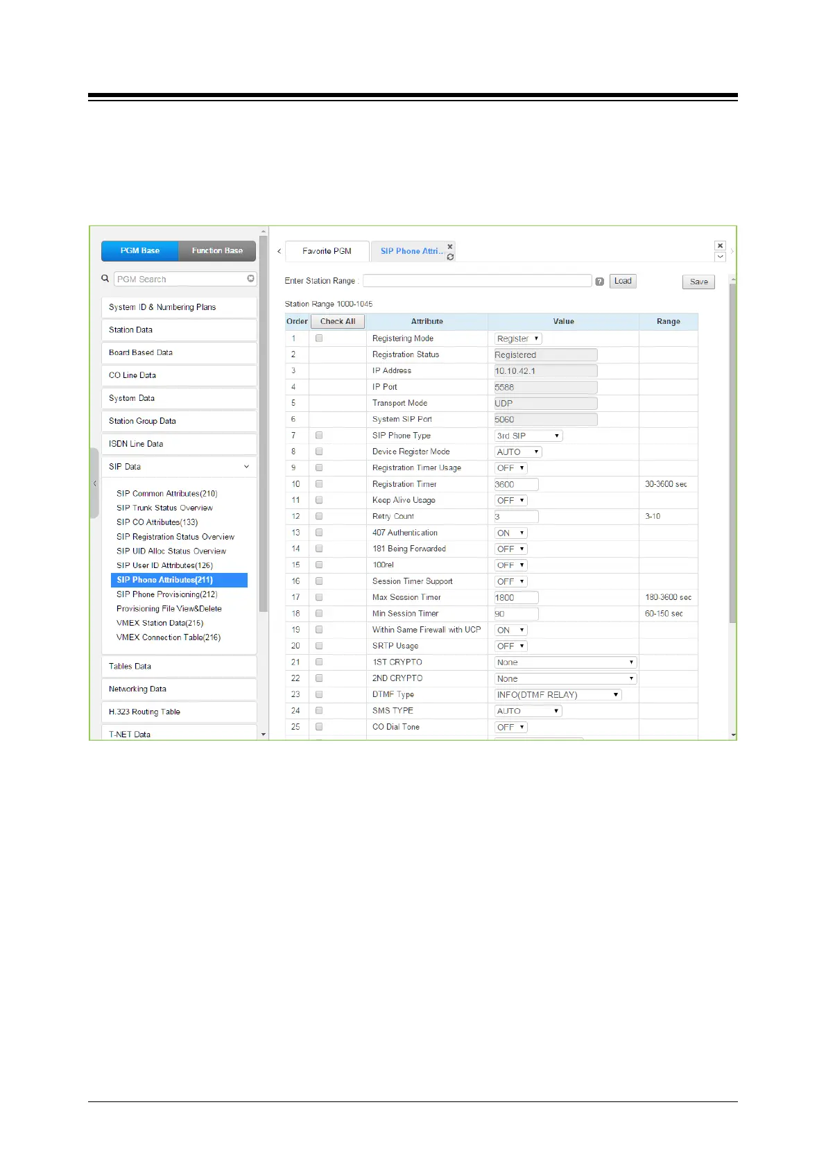 Number or range, and click [Load] to view the SIP Phone Attributes for the first Station Number