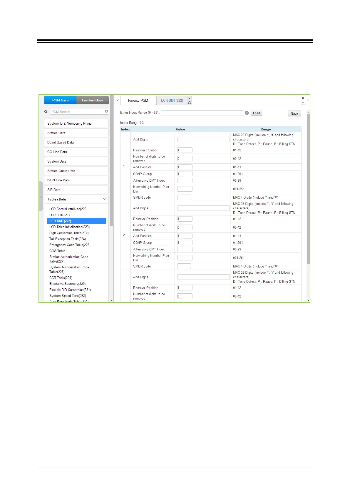 4.4.9.3 LCR DMT (Digit Modification Table) - PGM 222