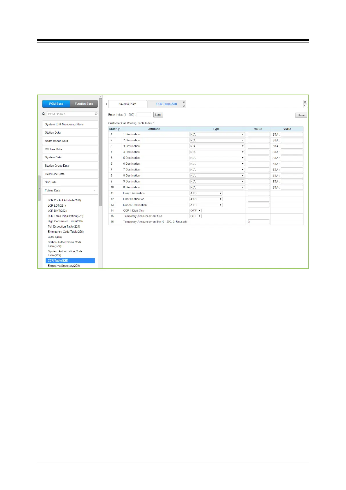 select the appropriate CCR Table and click [Load] to modify the table. Click [Save] button after