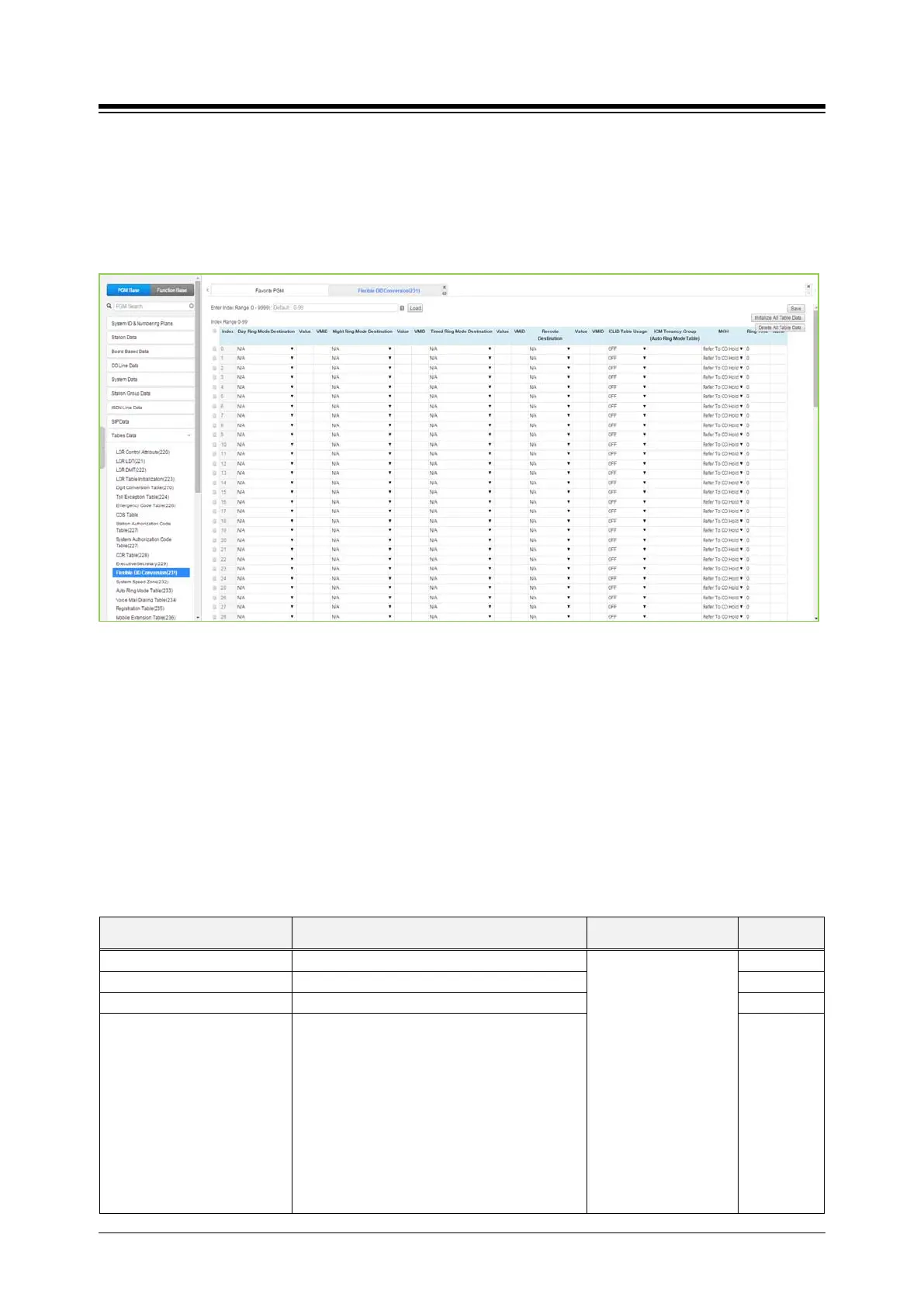 Selecting Flexible DID Conversion Table will display the Flexible DID Table data entry page. For