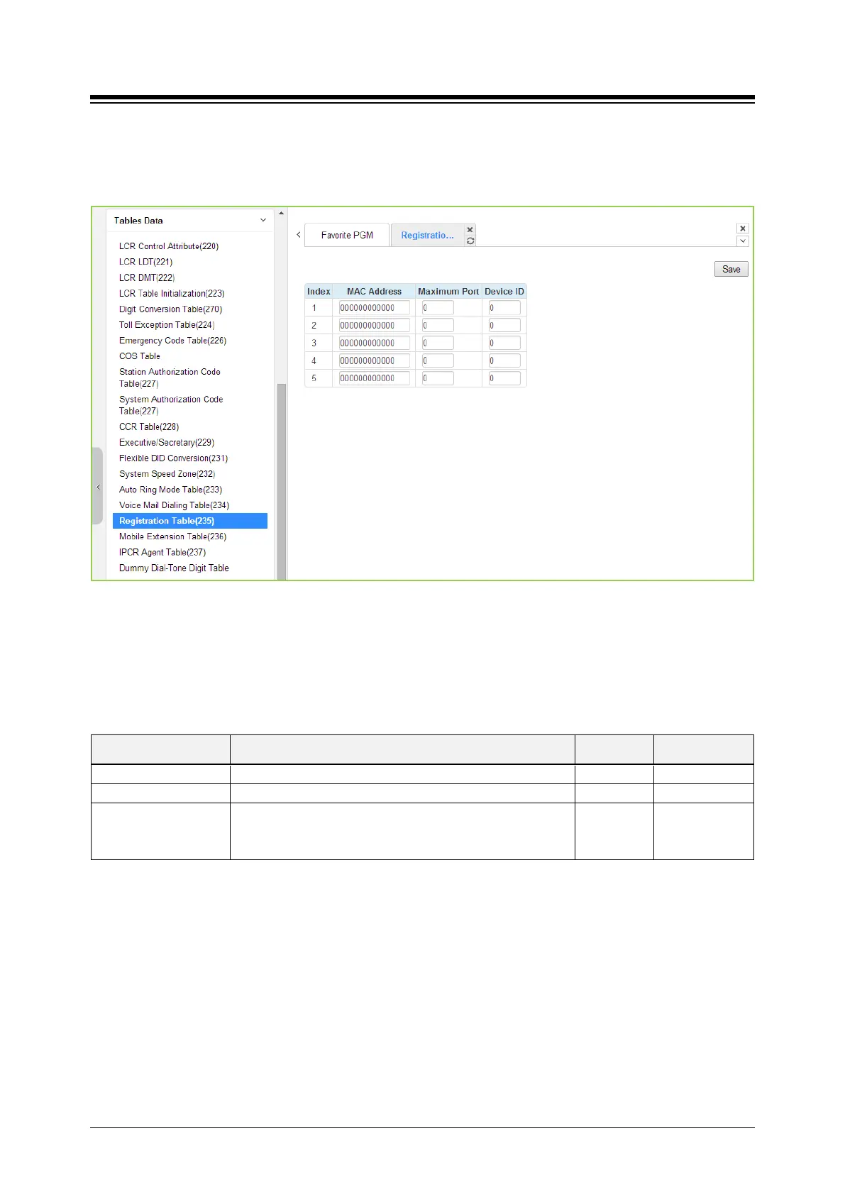 Selecting Registration Table will display the Registration data entry page. Click [Save] button