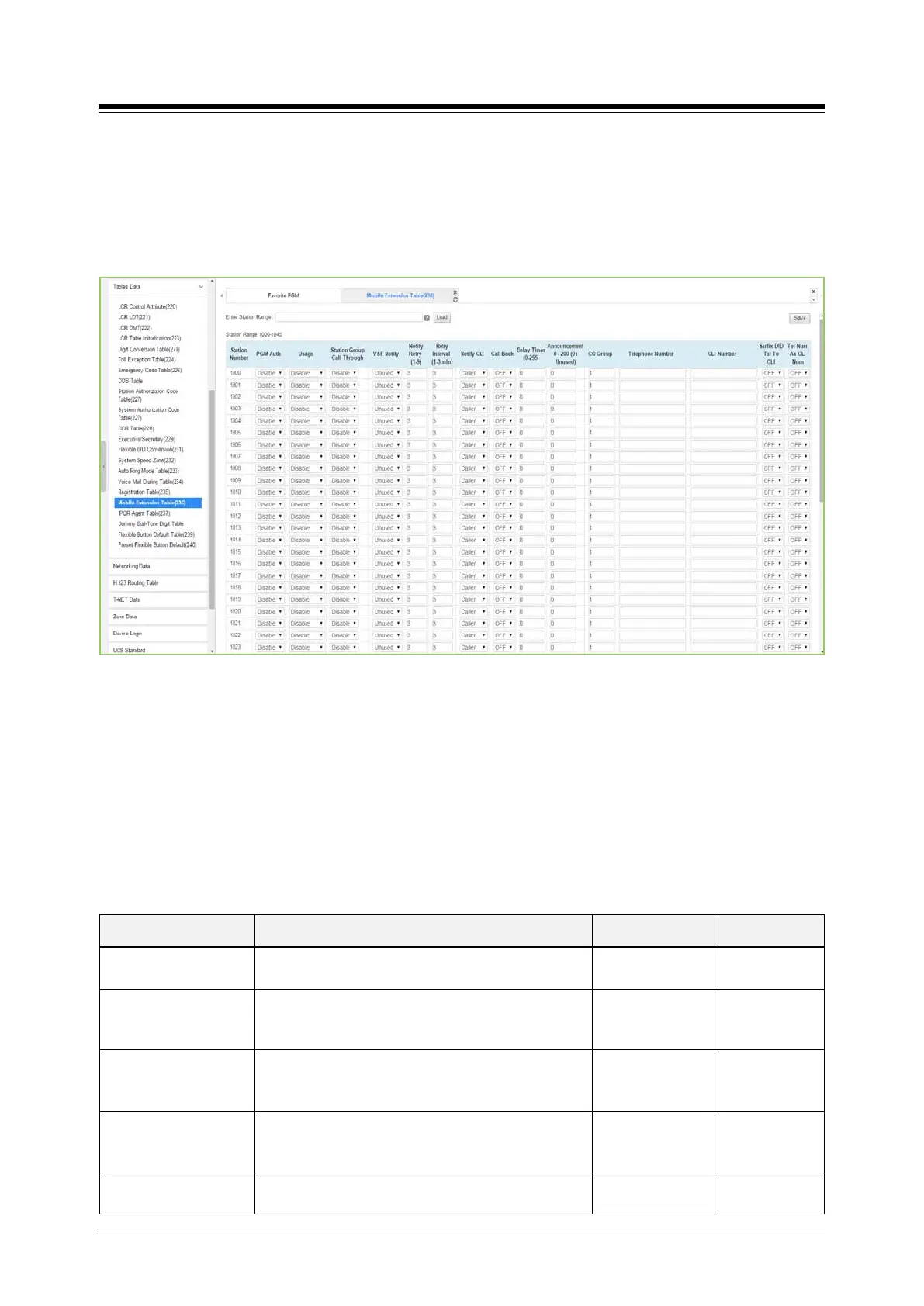 4.4.9.17 Mobile Extension Table - PGM 236