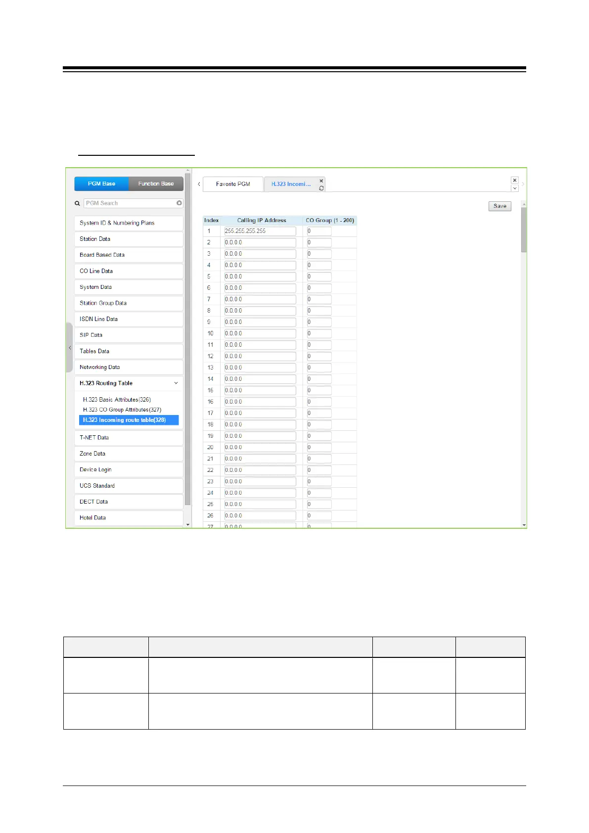4.4.11.3 H.323 Incoming Route table -PGM 328