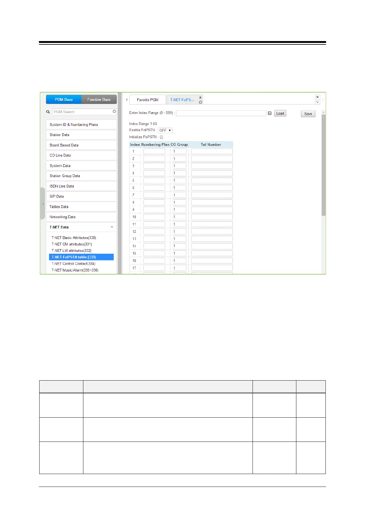 4.4.12.4 T-NET FoPSTN table -PGM 333