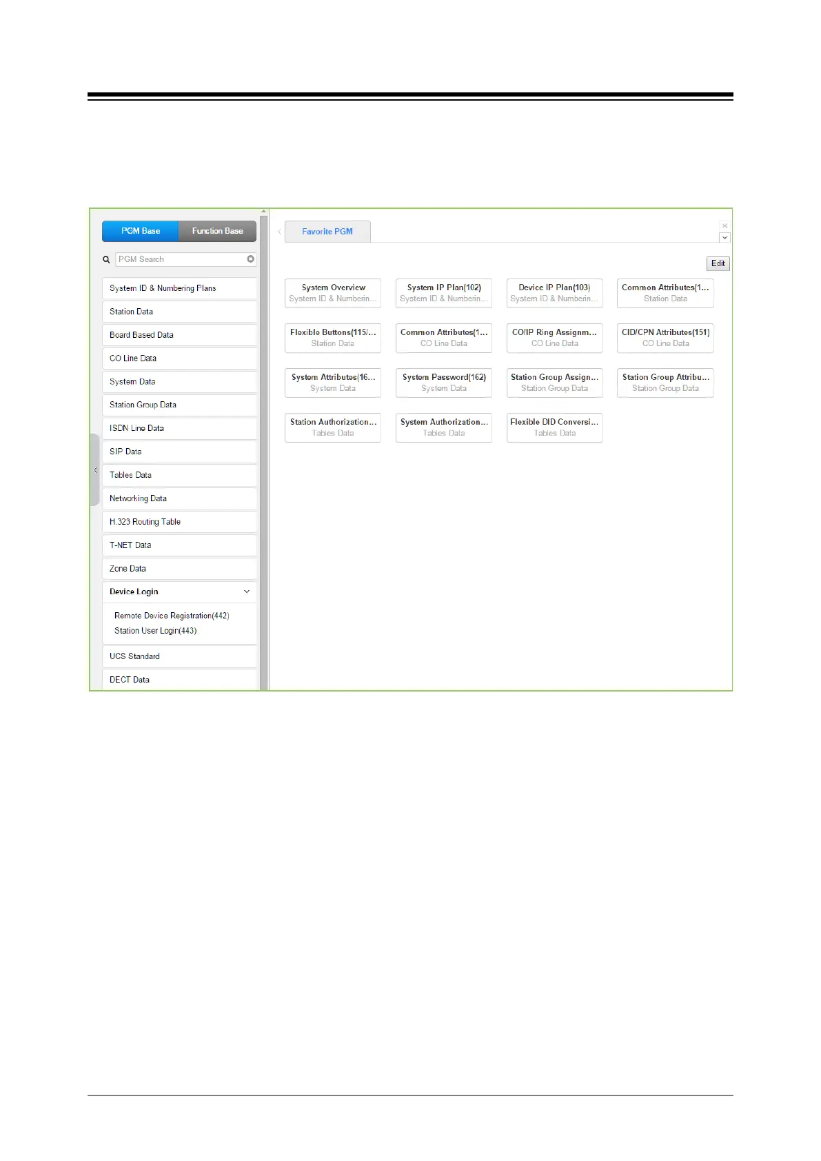 Selecting the Device Login Data program group returns the sub-menu displayed in the left frame
