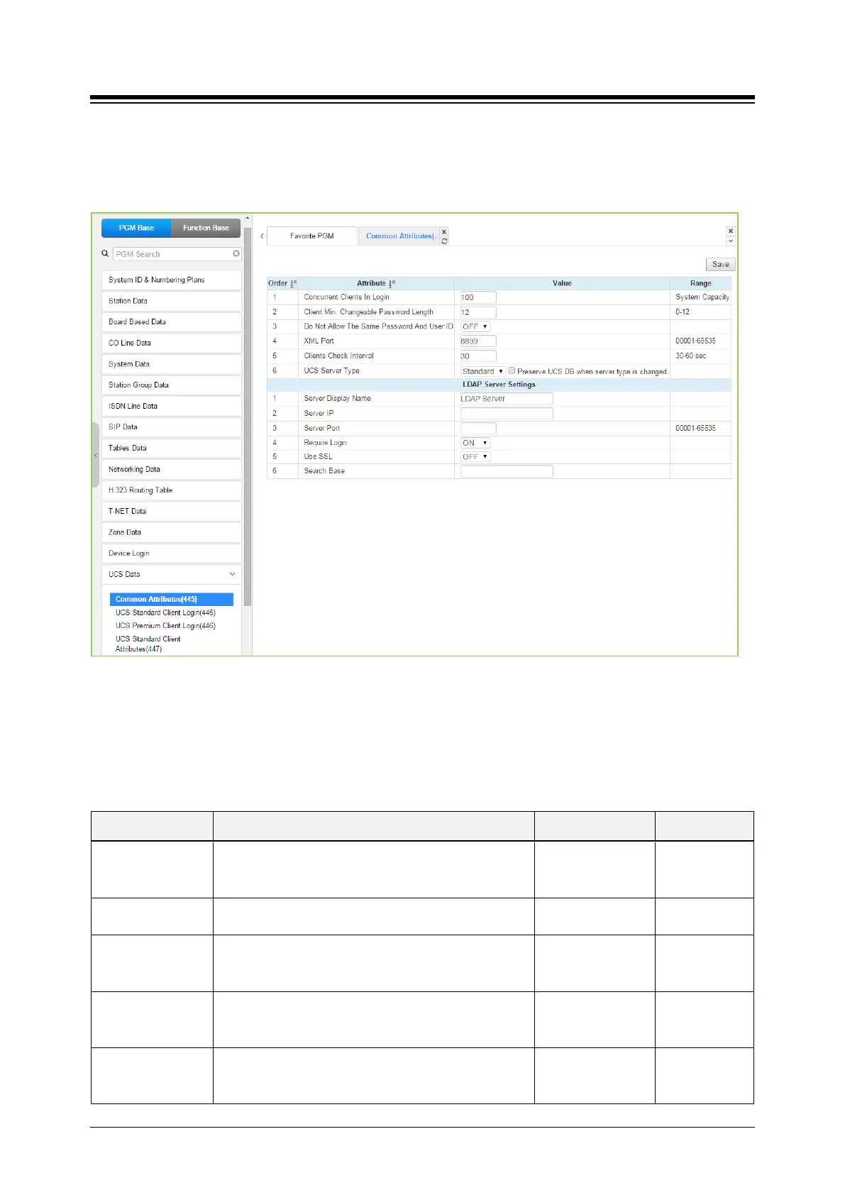 Common Attributes for the UCS Clients include client login characteristics and LDAP server