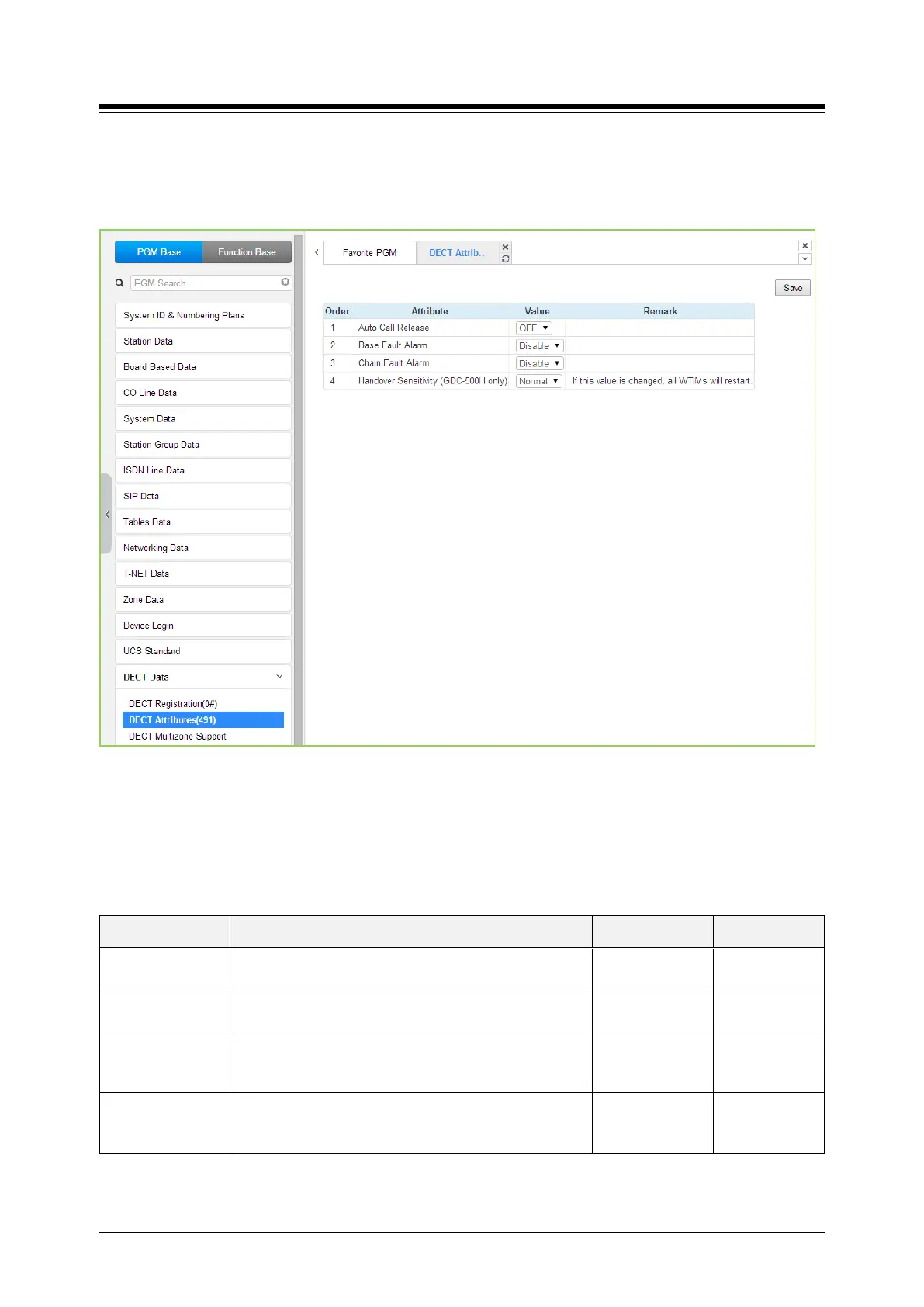 4.4.16.2 DECT ATTRIBUTES - PGM 491