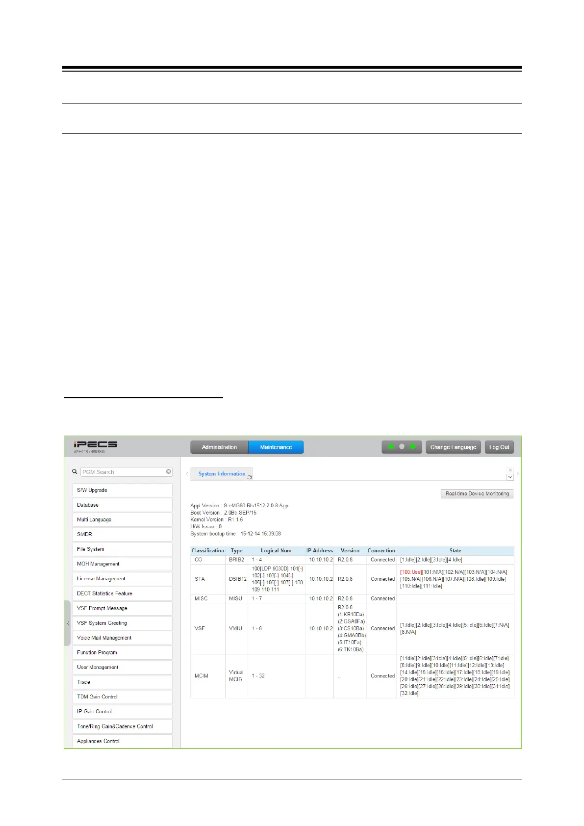 detailed software version information is provided. Also, you can monitor the device in real time by