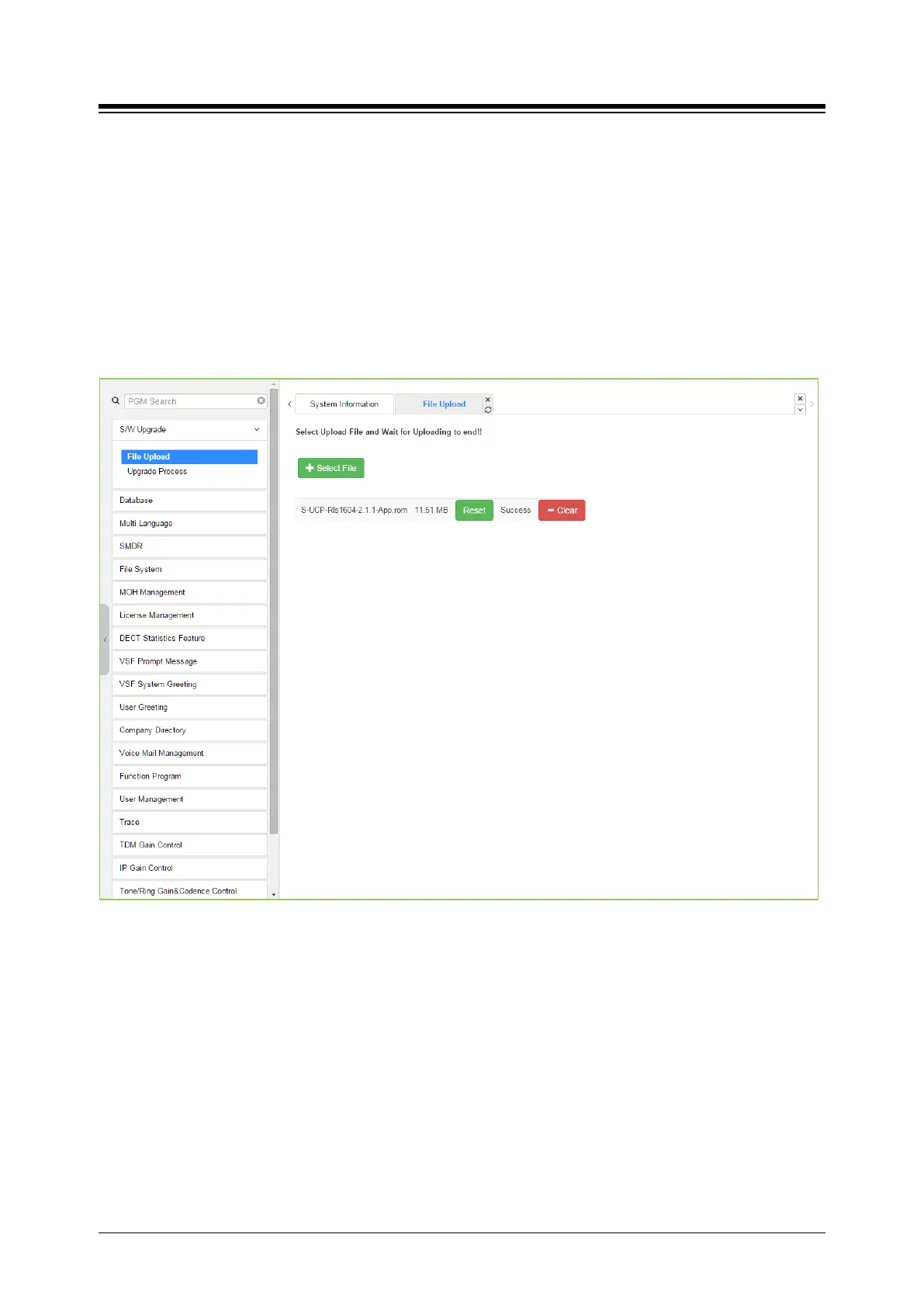 uploaded. Refer to ‘File System section’ to view the free disk space and delete any unused files.
