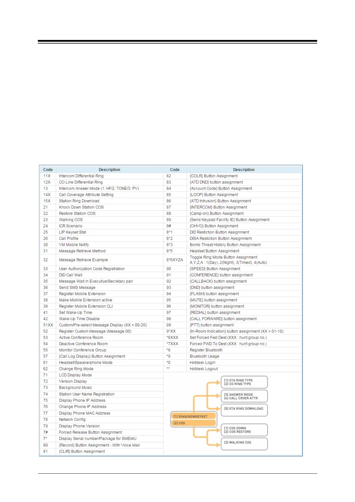 Many of these codes may be assigned to a button of an iPECS IP or LDP Phone by pressing the
