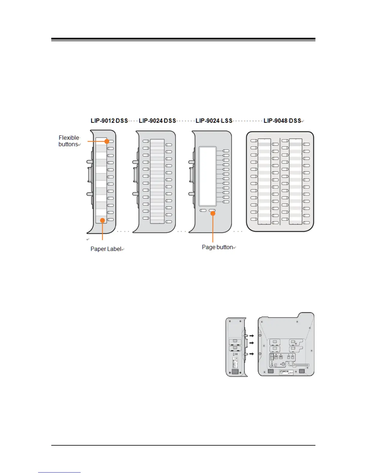 LIP-9048 DSS has 48 flexible buttons with tri-color LED. The DSS uses a paper