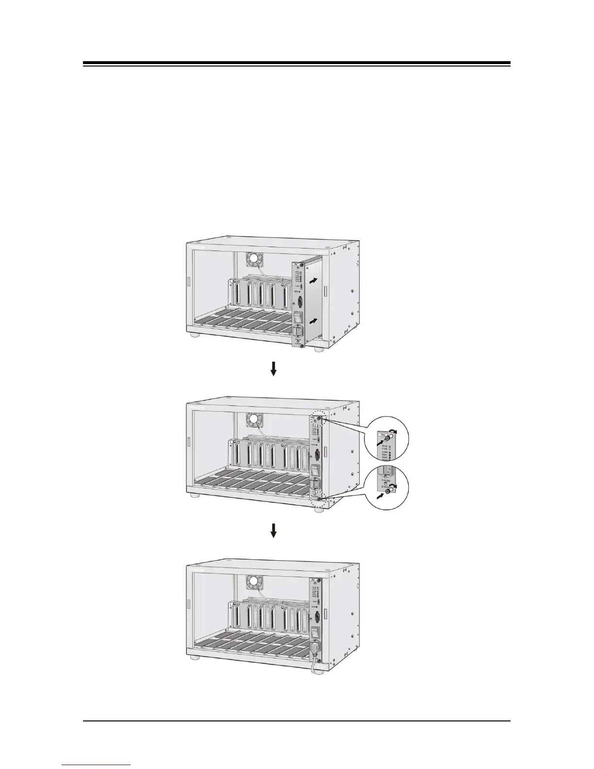 2. Fasten the PSU by tightening the upper and lower thumbscrews on the front of PSU.
