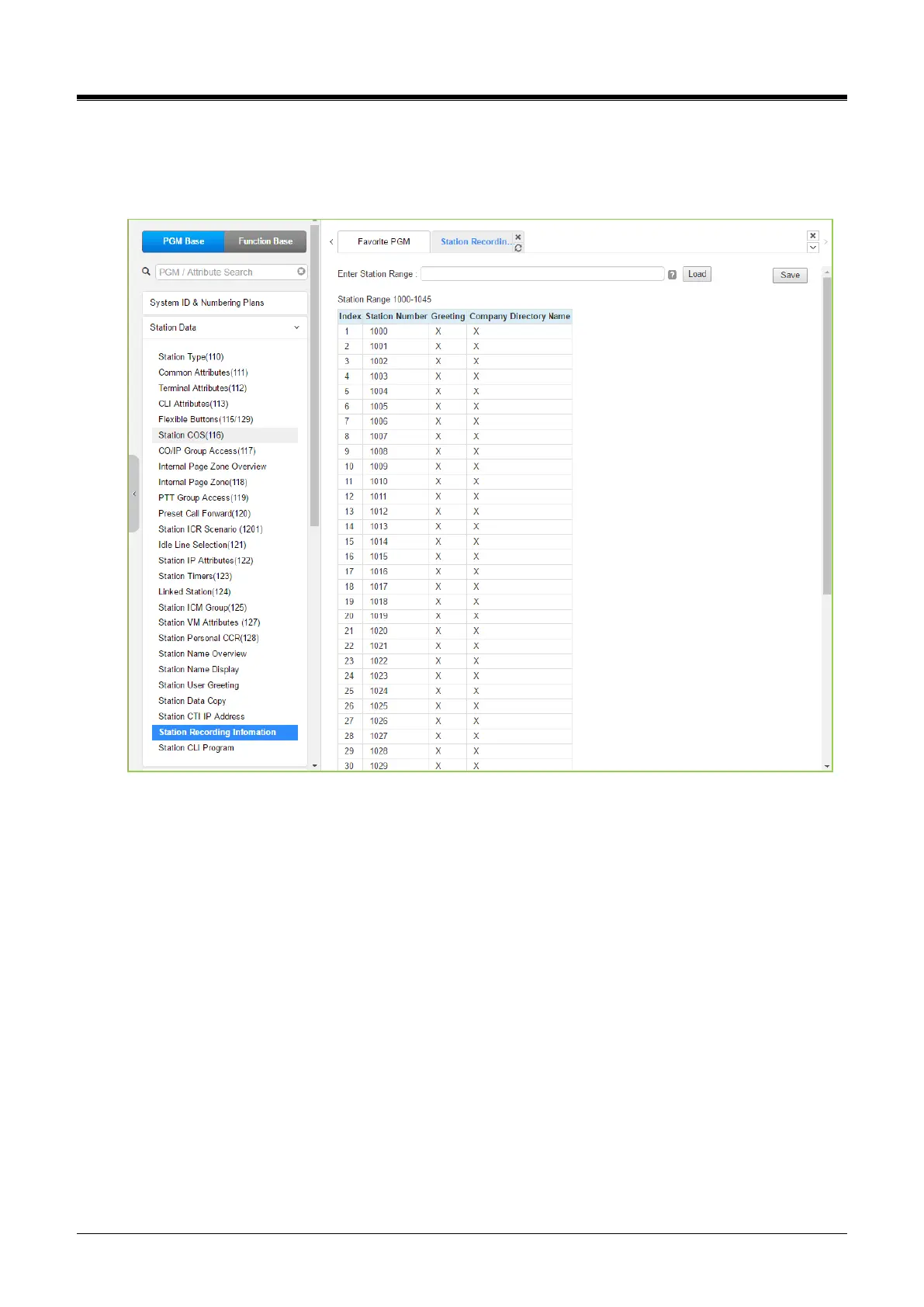 Enter a Station Range and click [Load] to display and check the current recording information on each station.