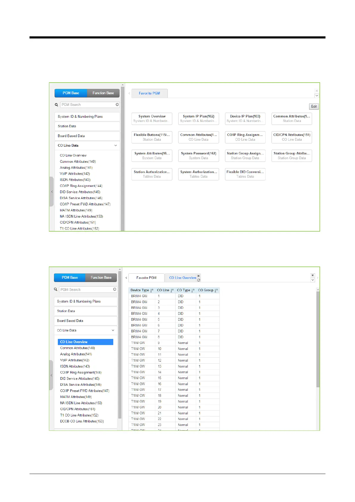 The following figure shows that selecting the CO Line Data program group returns the sub-menu displayed in