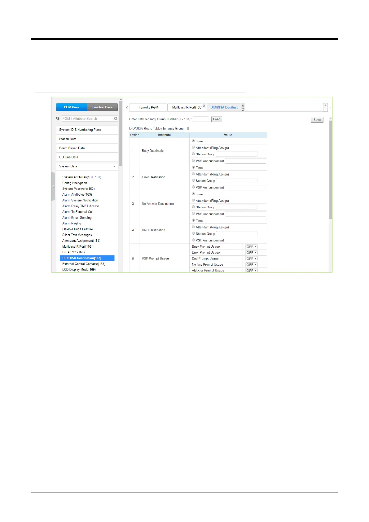 display the DID/DISA Destination Attributes. Click the [Save] button after changing Value.