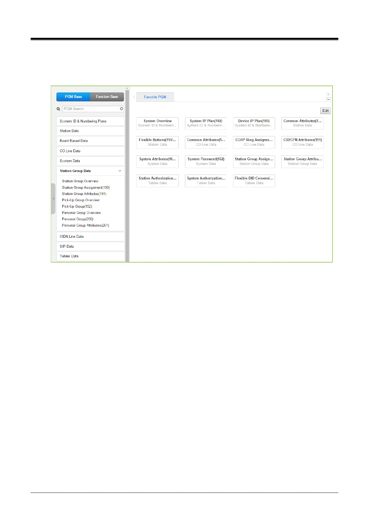 Selecting the Station Group Data program group returns the sub-menu displayed in the left frame as shown in