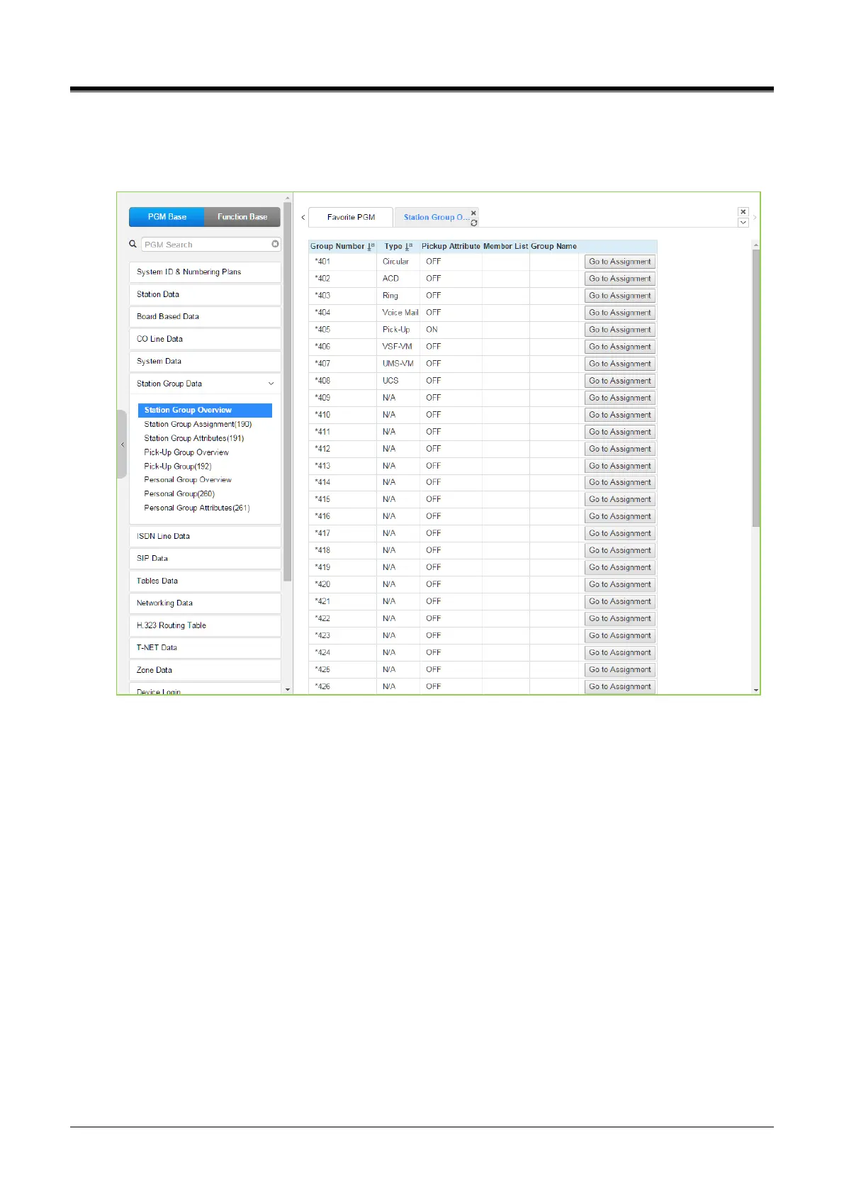Assignment” on this page. Station Group Assignment (190) will be displayed and directly go to Station Group