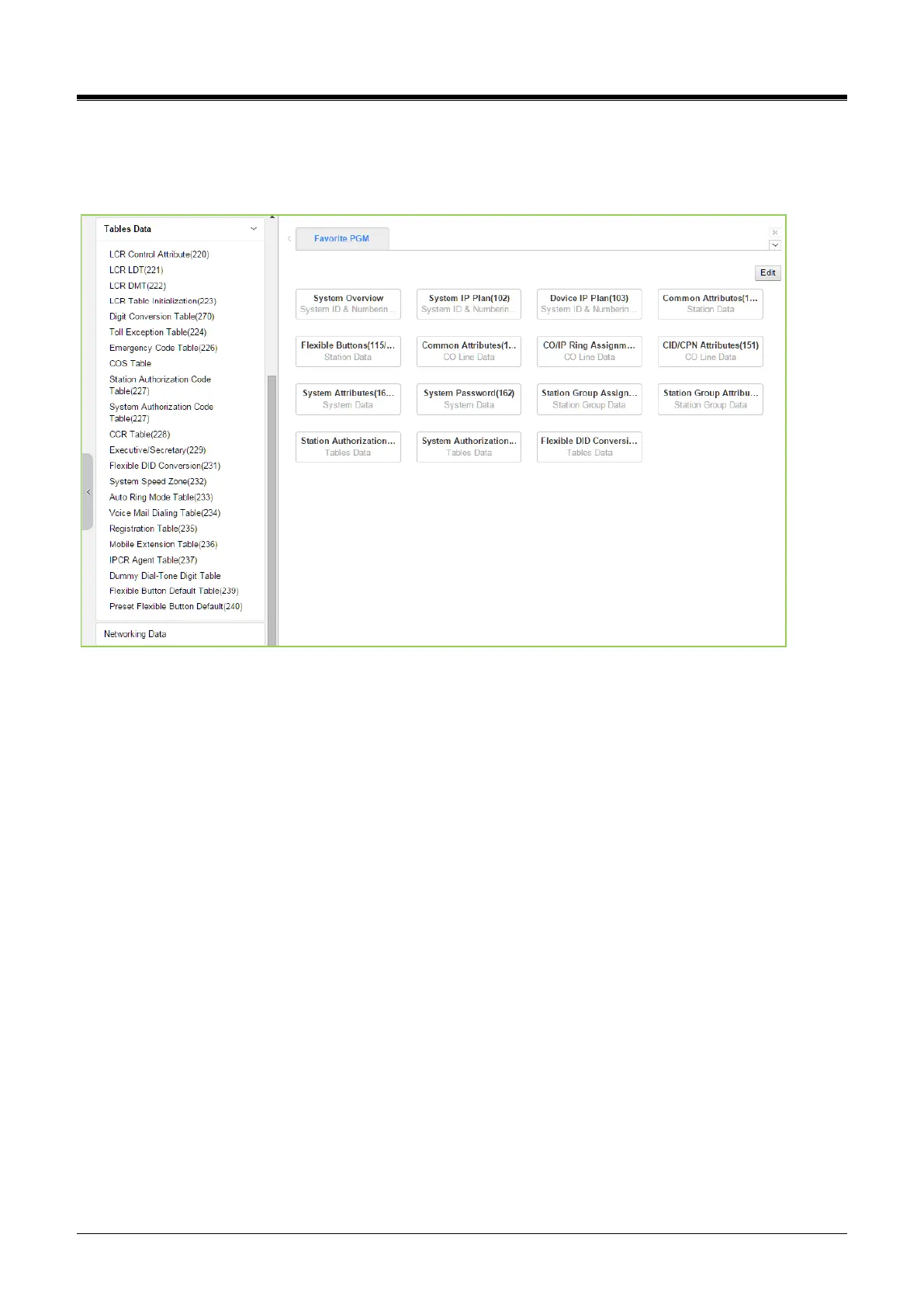 Selecting the Tables Data group returns the sub-menu displayed in the left frame as shown in the following