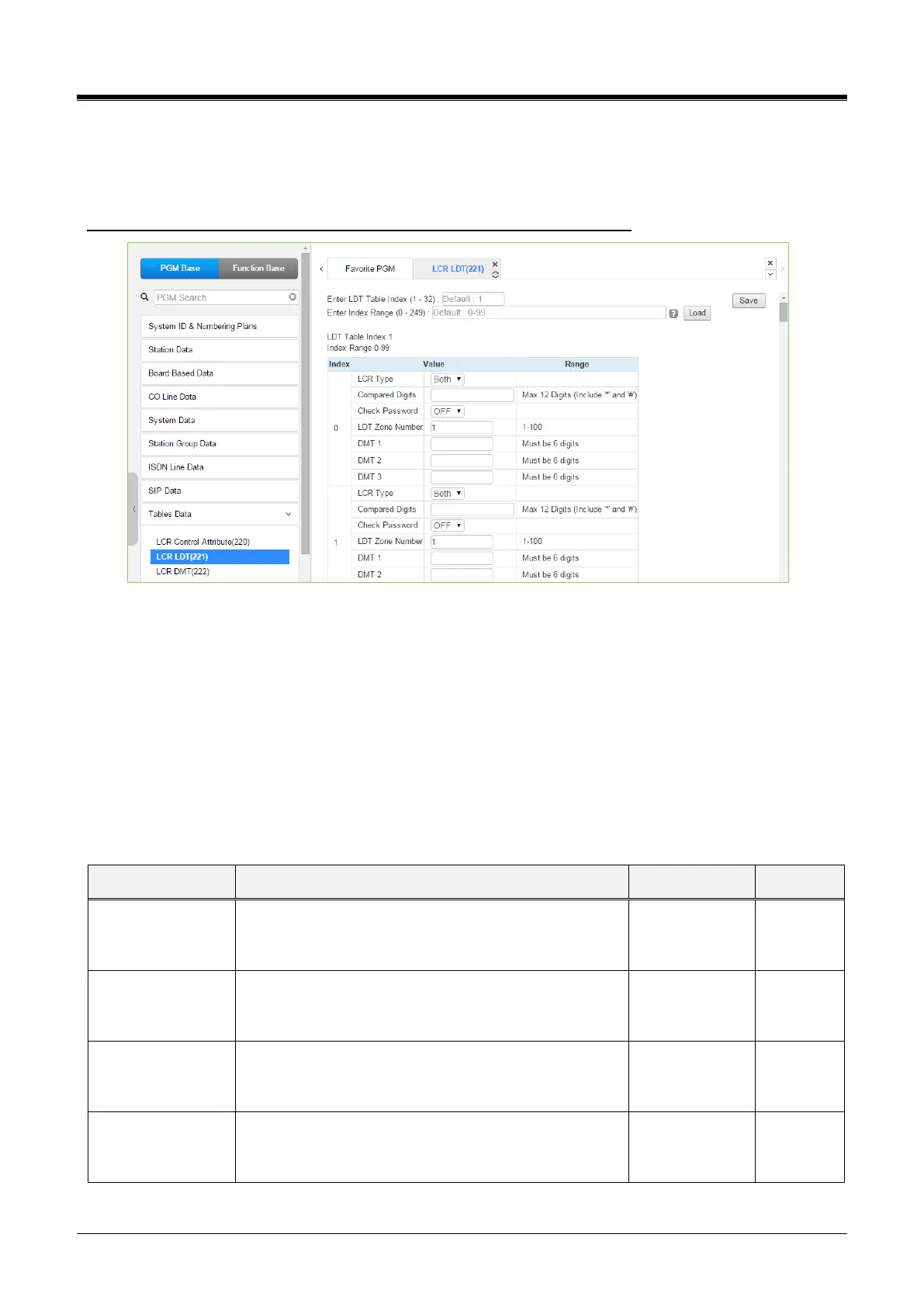 4.4.9.2 LCR LDT (Leading Digit Table) - PGM 221