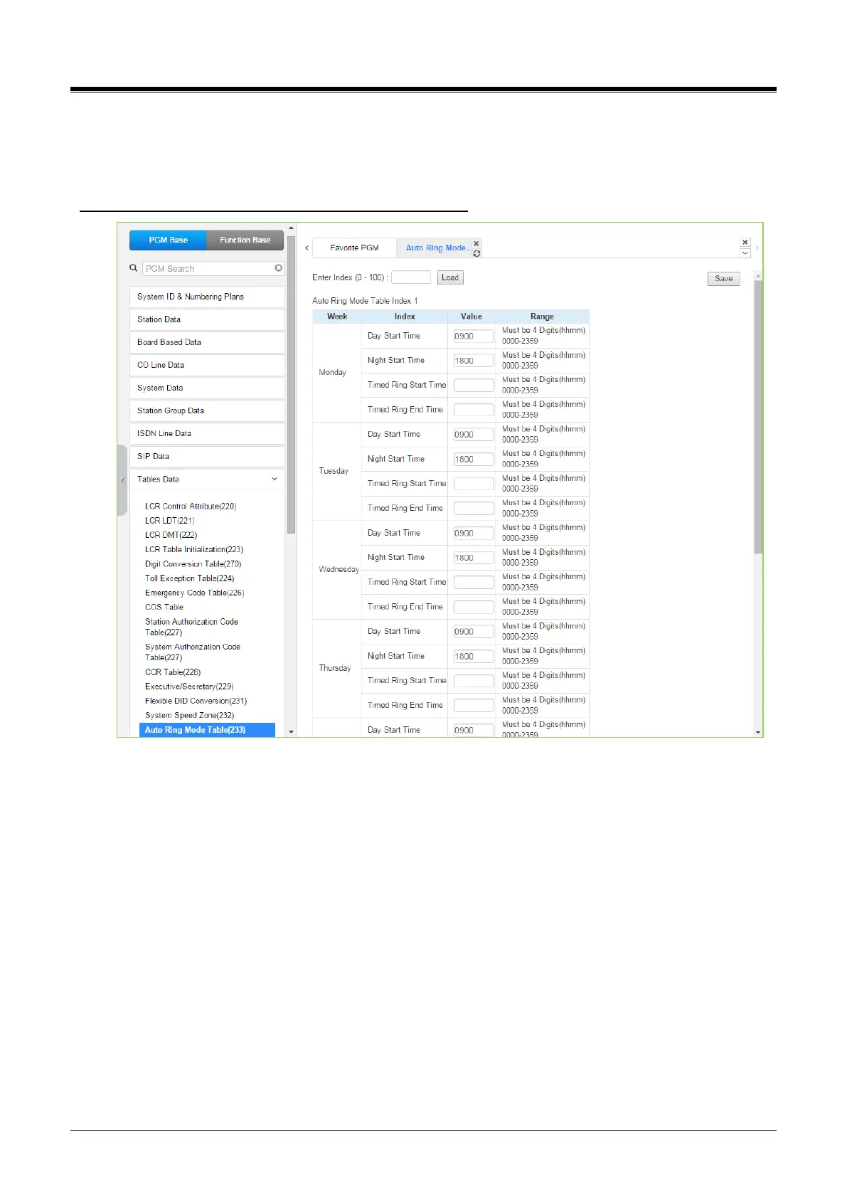 4.4.9.14 Auto Ring Mode Table - PGM 233
