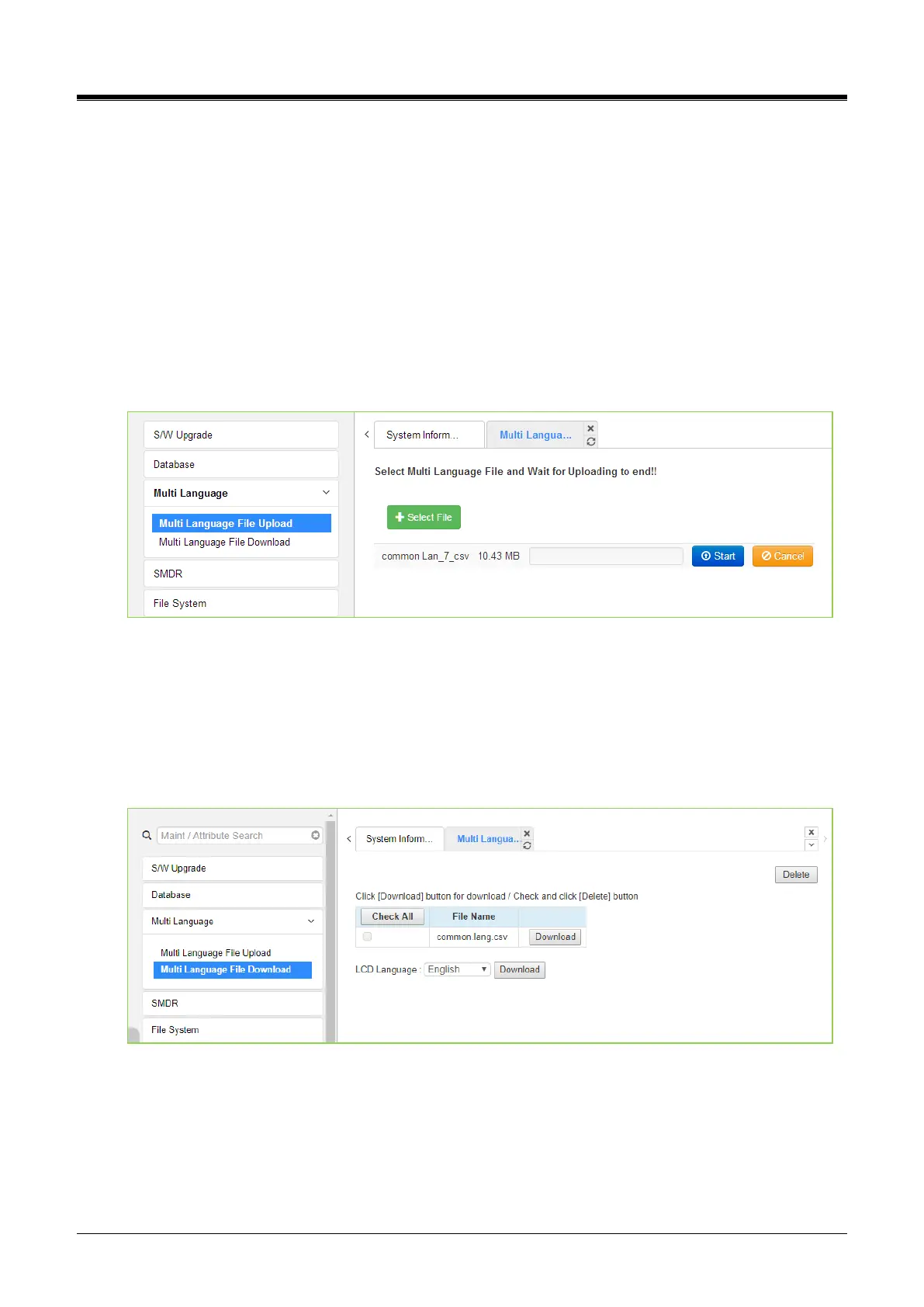 It also allows the Multi-Language File in the PC to be uploaded to the iPECS system using the file upload