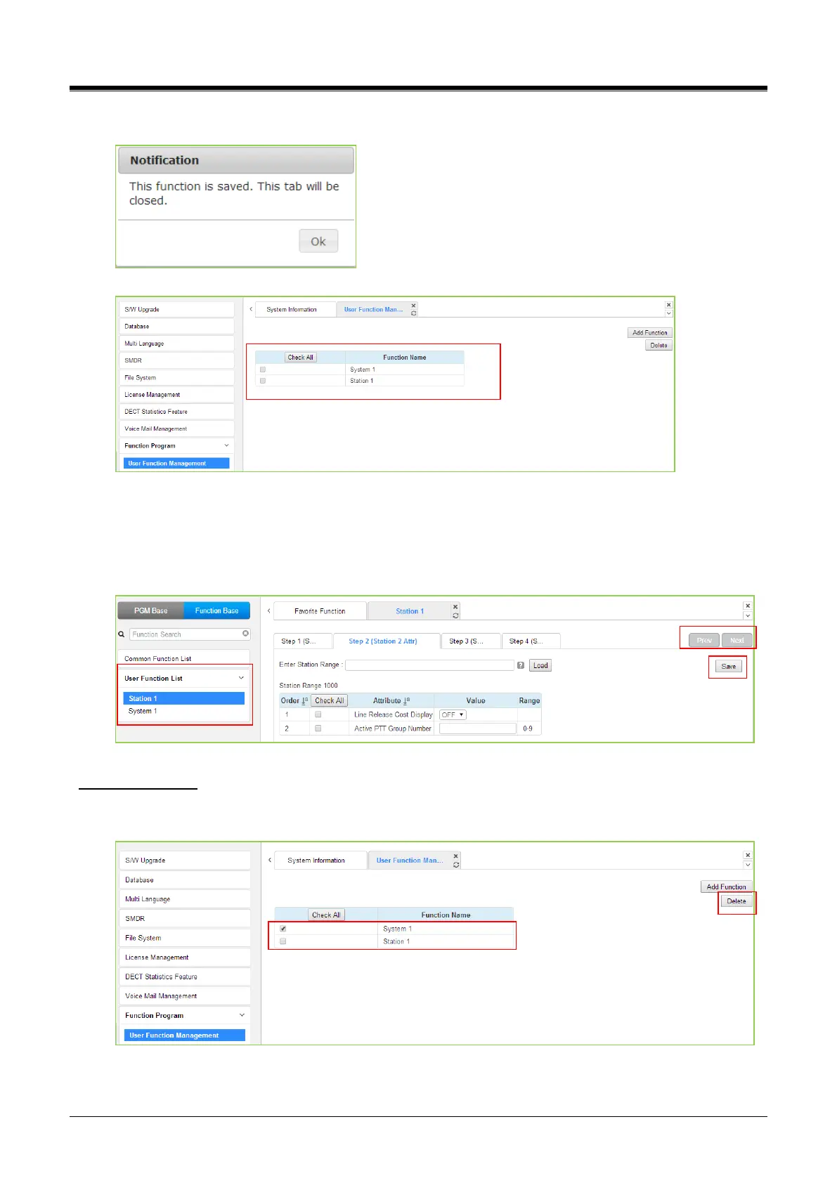 To delete the user function, click Maintenance at the top of the window and click the Function Program -> User