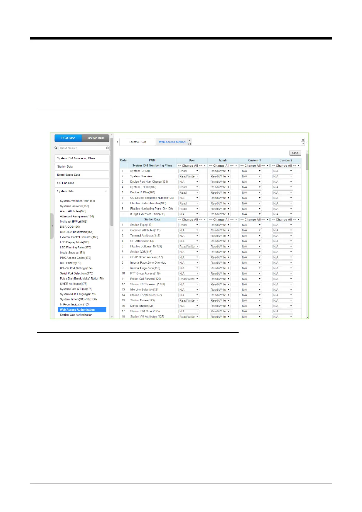 6) The available PGM menu will be displayed by assigning ‘Web Access Authorization.’