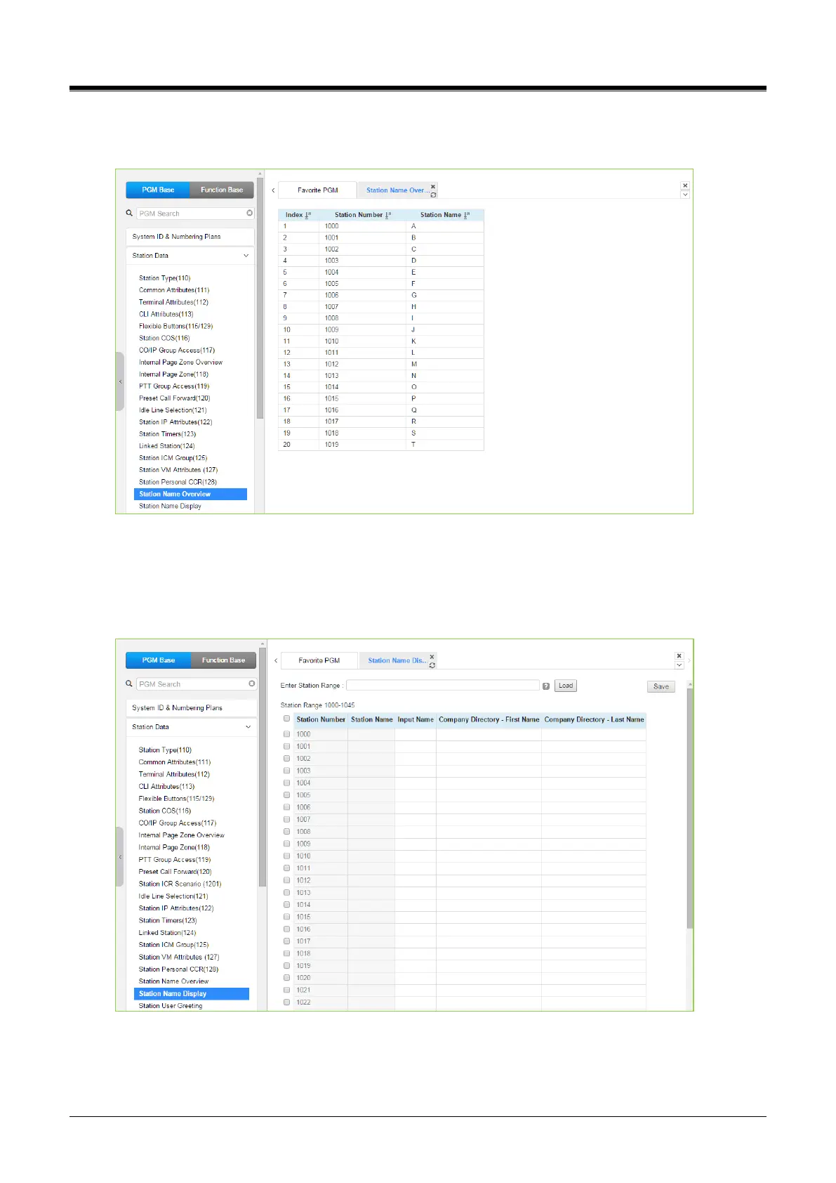 the Station Name input page. Enter a valid Station range and click [Load] to enter the Station Name data. For