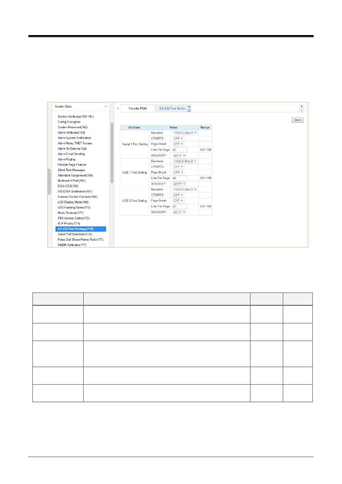Table 4.4.5.22-1 RS232 PORT and USB 1&2 port Settings