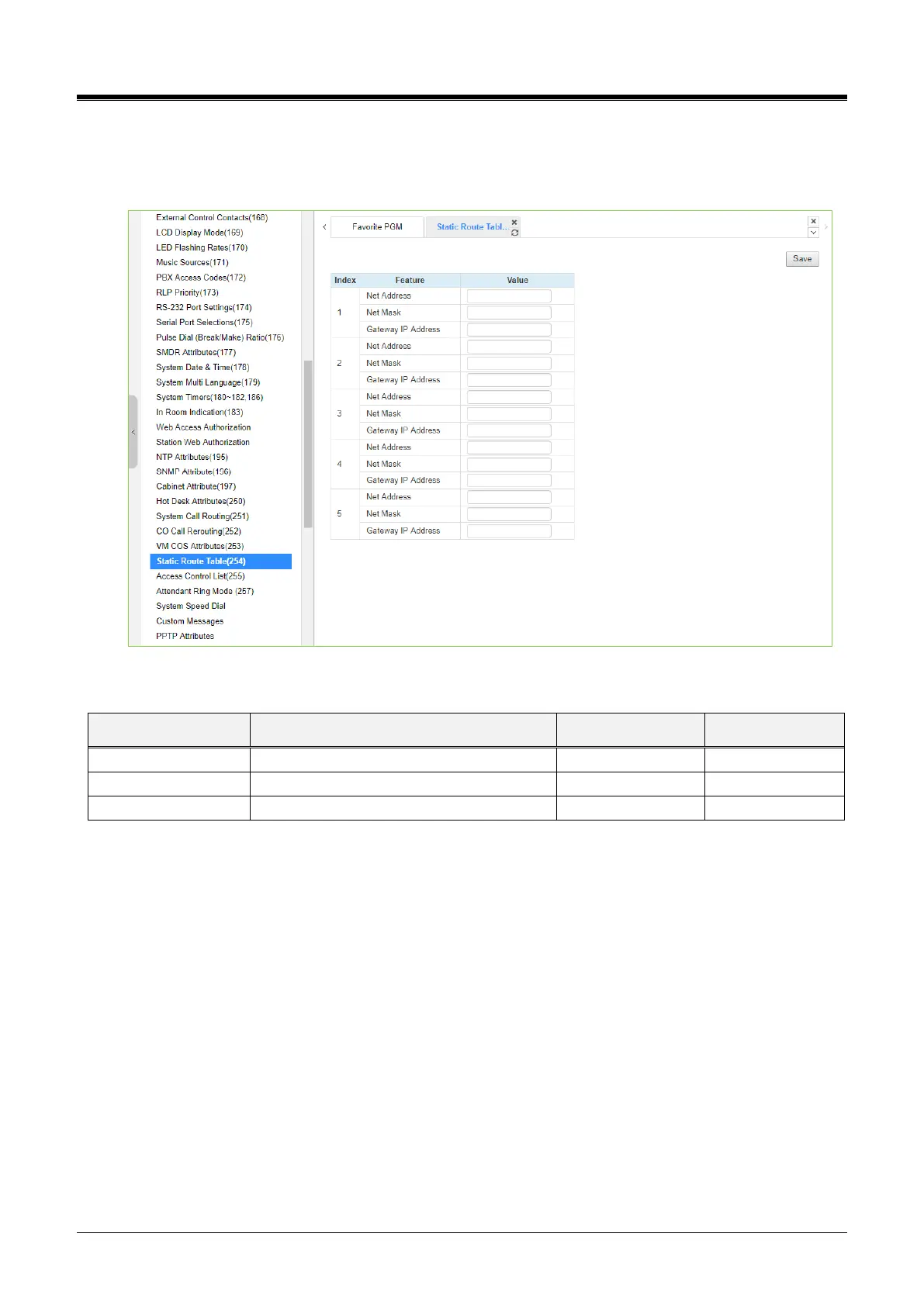 iPECS UCP600 - Static Route Attributes - PGM 254