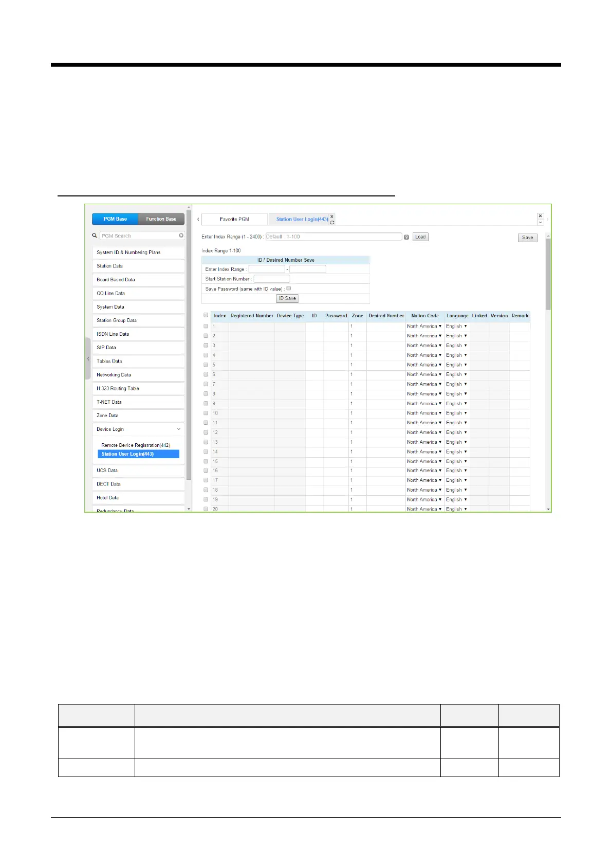 desired station number, country code, Language, and a remark can be defined.