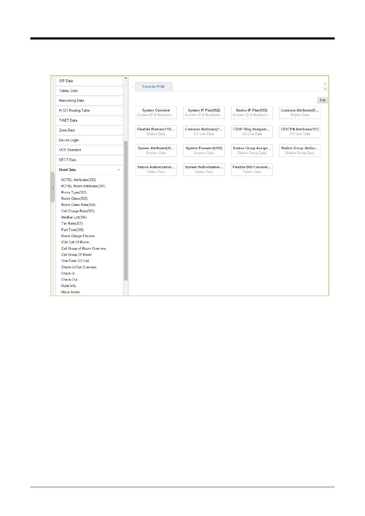 With Hotel Data, we describe the function on another Hotel Feature and Programming manual. Refer to “Hotel