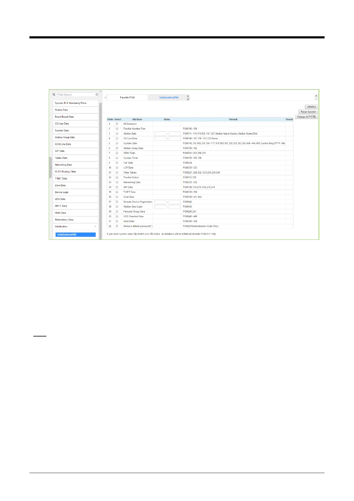 If you reset the UCP system when Dip switch 4 is On, all databases will be initialized, including PGM 101-104.