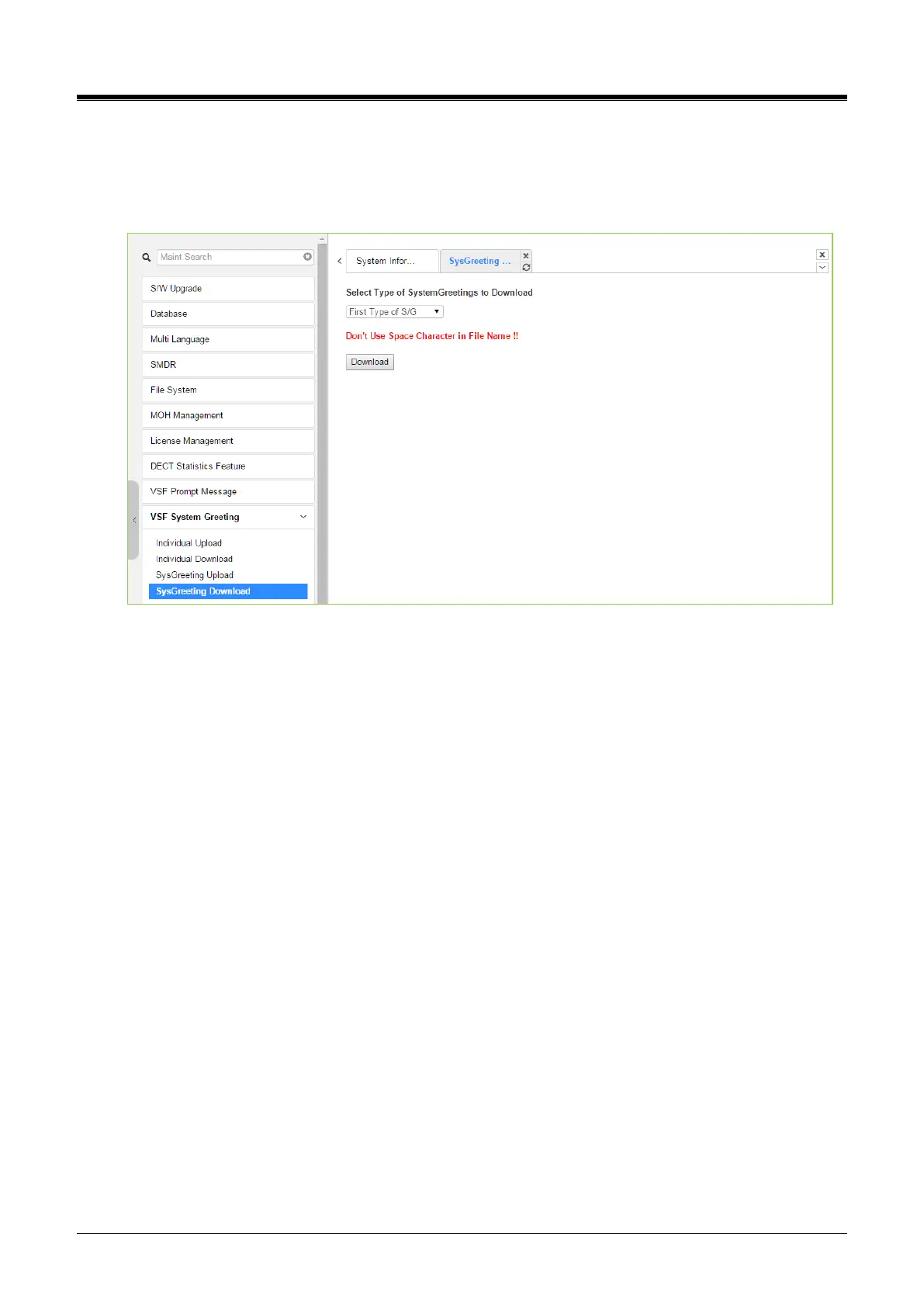 Selecting System Greeting Download displays the page shown in the figure. From this page, announcements
