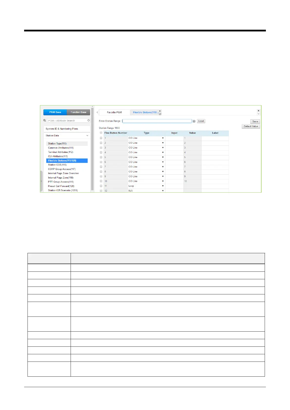 You can set the initial system default value if there is no assignment in Flexible Button Default Table (239) and