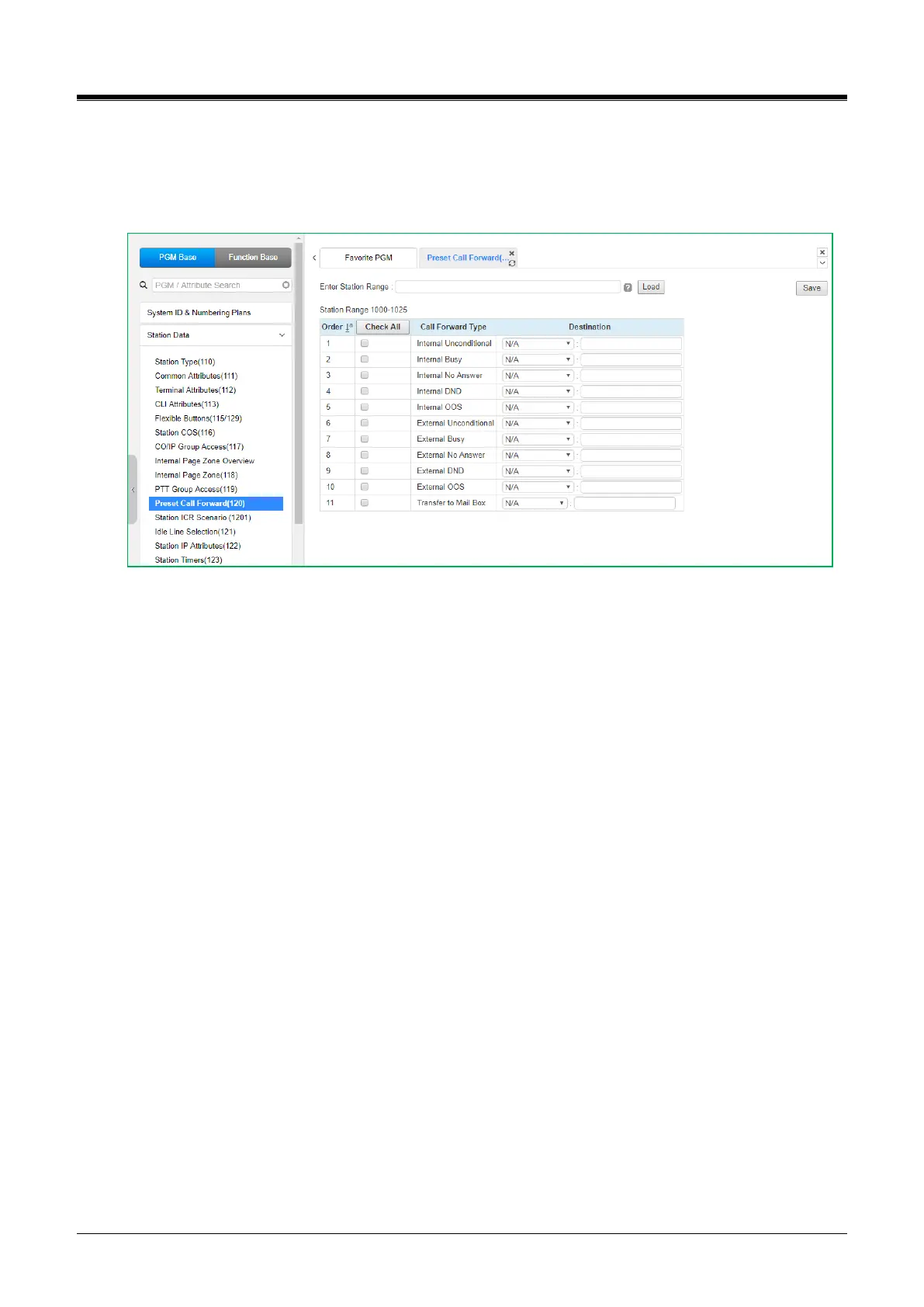 and click [Load] to enter the Station Preset Call Forward data. Use the checkmark to indicate which attributes