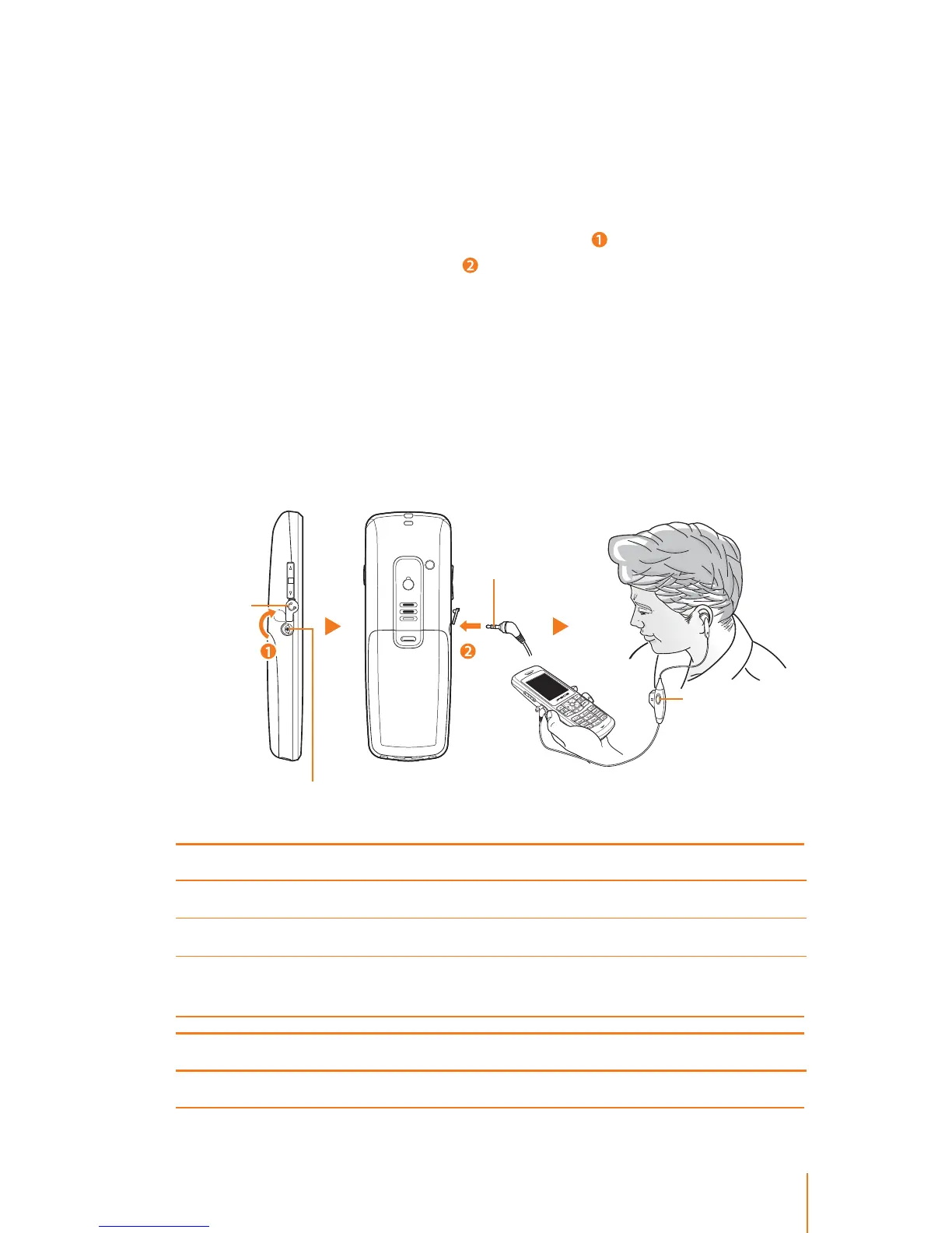 Ź Open the headset jack cover and ip it over ( ) and plug the head-