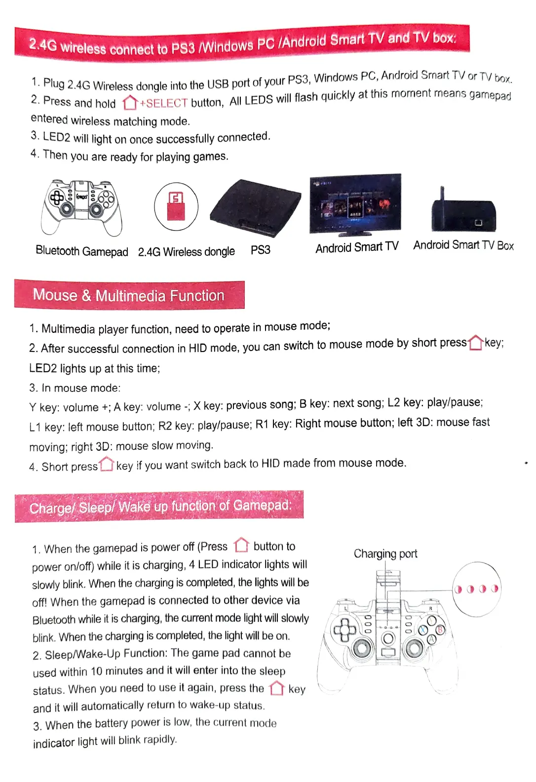 Bluetooth Gamepad 2.4G Wireless dongle PS3