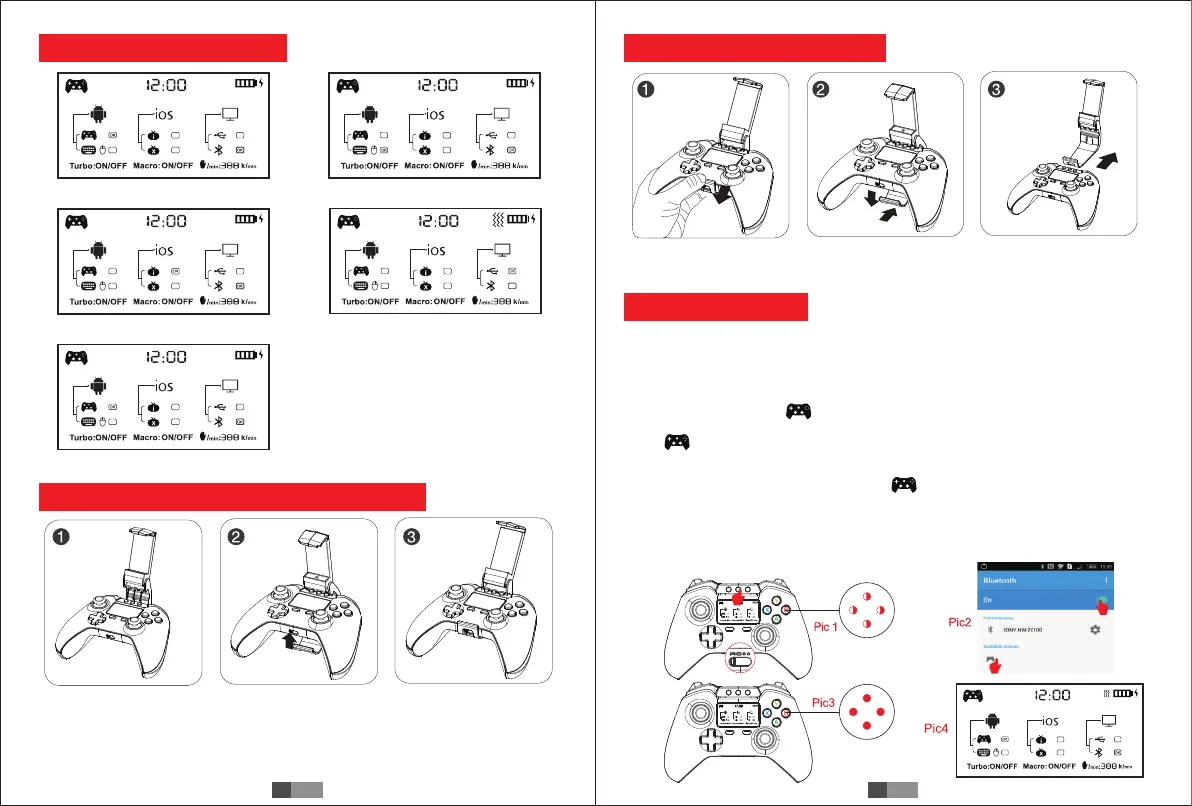 5.When the connection is successful, The icon , the word OK and A/B/X/Y indicator lights