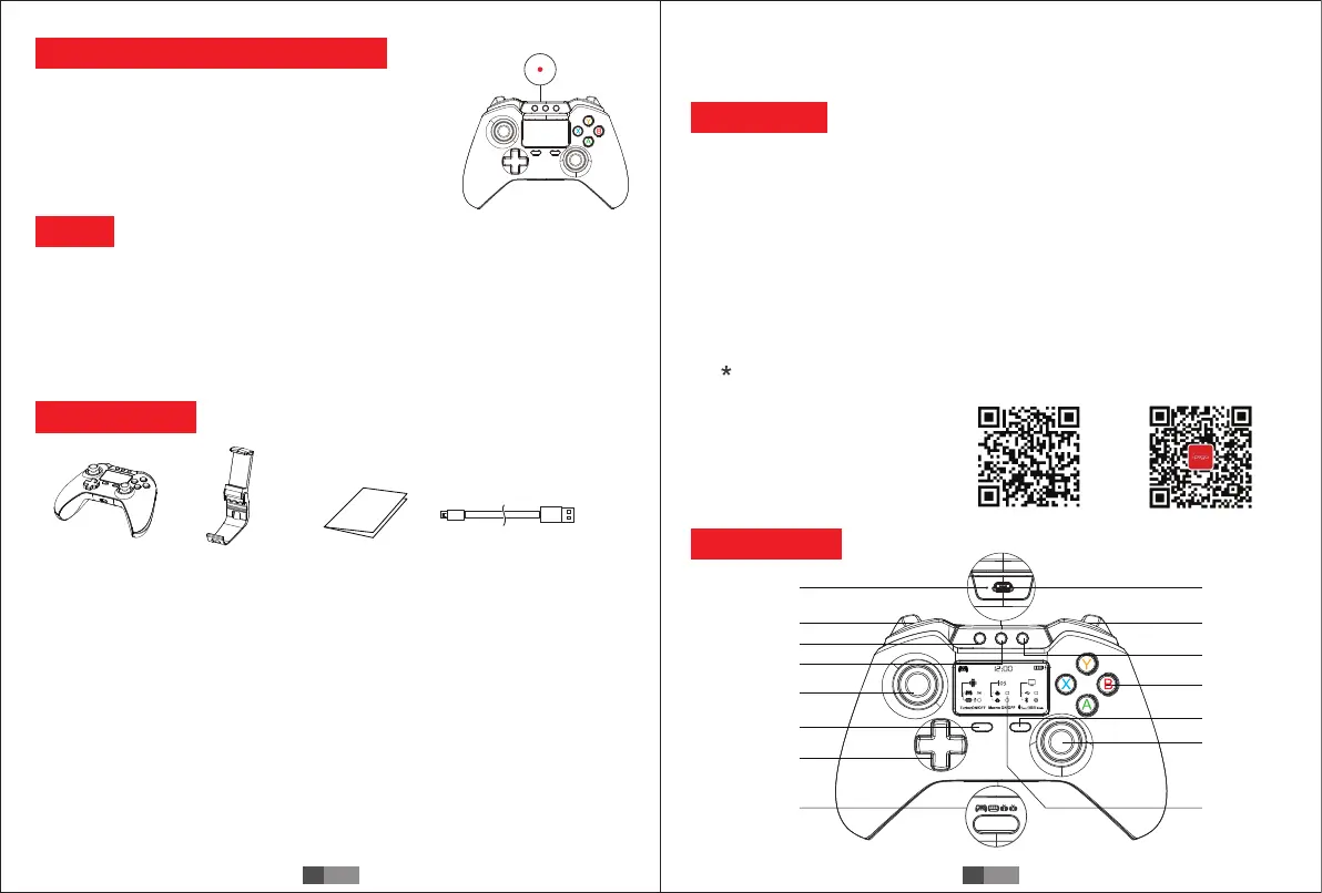 2.使用本产品前,请先扫描二维码,下载对应系统(Andriod和iOS)的智能蓝牙手柄APP;