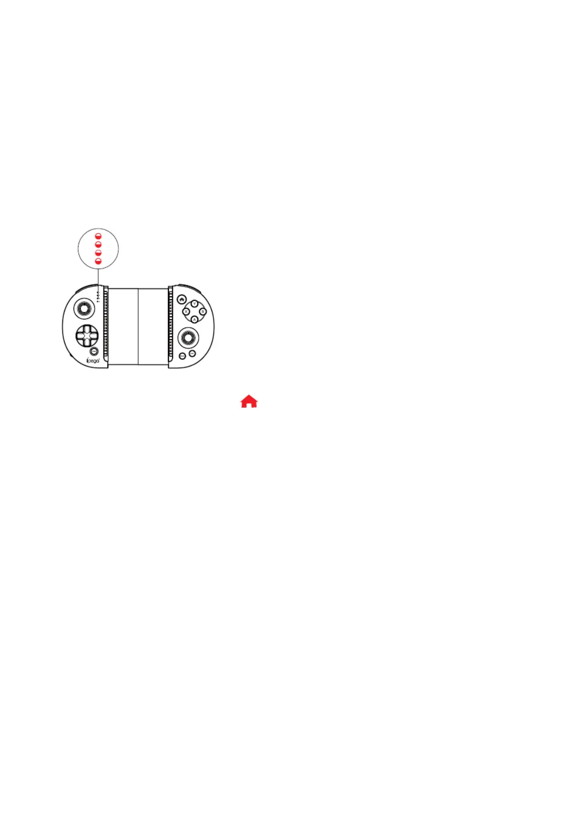 1. When the gamepad :s not connected to any device while it S charging, 4 LED indicator lights will slowly blink.